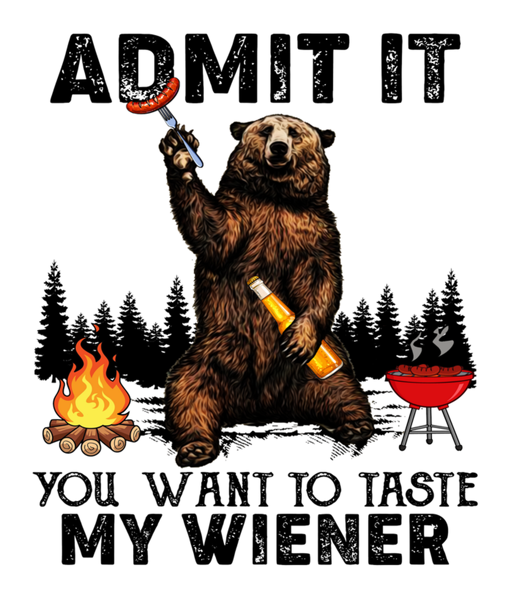 Highlights • Ships from Washington! Shorter shipping distances are kinder to the planet • Free shipping Materials: eco solvent ink, premium outdoor grade vinyl This is for one (1) 3.42 x 4 inch die cut vinyl waterproof sticker. Sticker decal depicting a bear holding a beer bottle, standing in front of a grill, and surrounded by camping items; text reads "ADMIT IT YOU WANT TO TASTE MY WIENER. Sticker decal is indoor and outdoor (UV) safe. These high quality decal stickers are thick and durable and can be used many ways and on many items such as car windows, walls, lockers, tumblers, wine glasses, notebooks, planners, mirrors, cellphone cases, and more. Makes a great gift! Funny waterproof sticker - weatherproof bumper sticker - vinyl decal