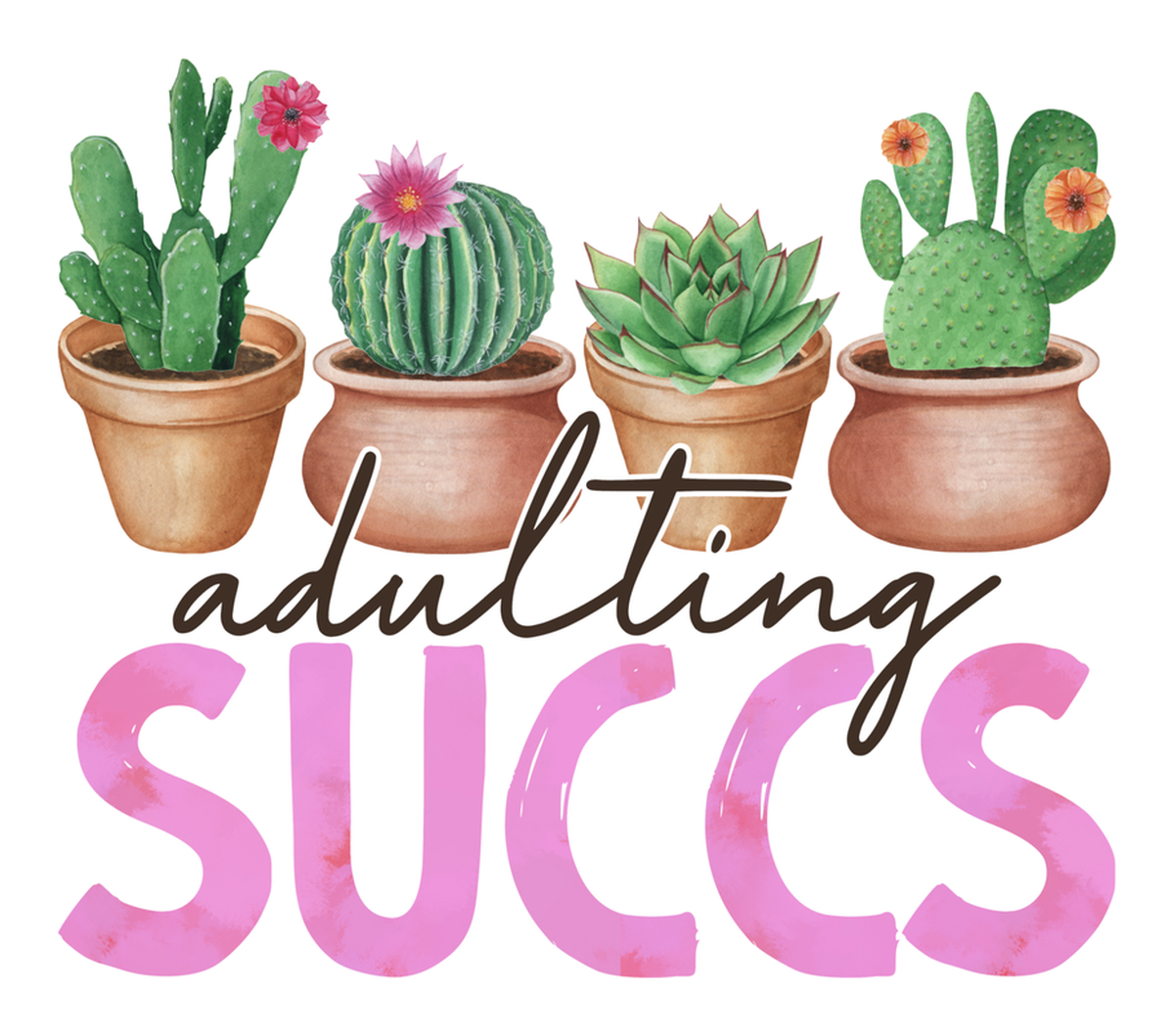 Highlights • Ships from Washington! Shorter shipping distances are kinder to the planet • Free shipping Materials: eco solvent ink, premium outdoor grade vinyl This is for one (1) 4 x 3.53 inch die cut vinyl waterproof sticker. Sticker decal of cactus pots with different types of cacti, saying "Adulting Succeeds" in pink and white text. Sticker decal is indoor and outdoor (UV) safe. These high quality decal stickers are thick and durable and can be used many ways and on many items such as car windows, walls, lockers, tumblers, wine glasses, notebooks, planners, mirrors, cellphone cases, and more. Makes a great gift! Funny waterproof sticker - weatherproof bumper sticker - vinyl decal