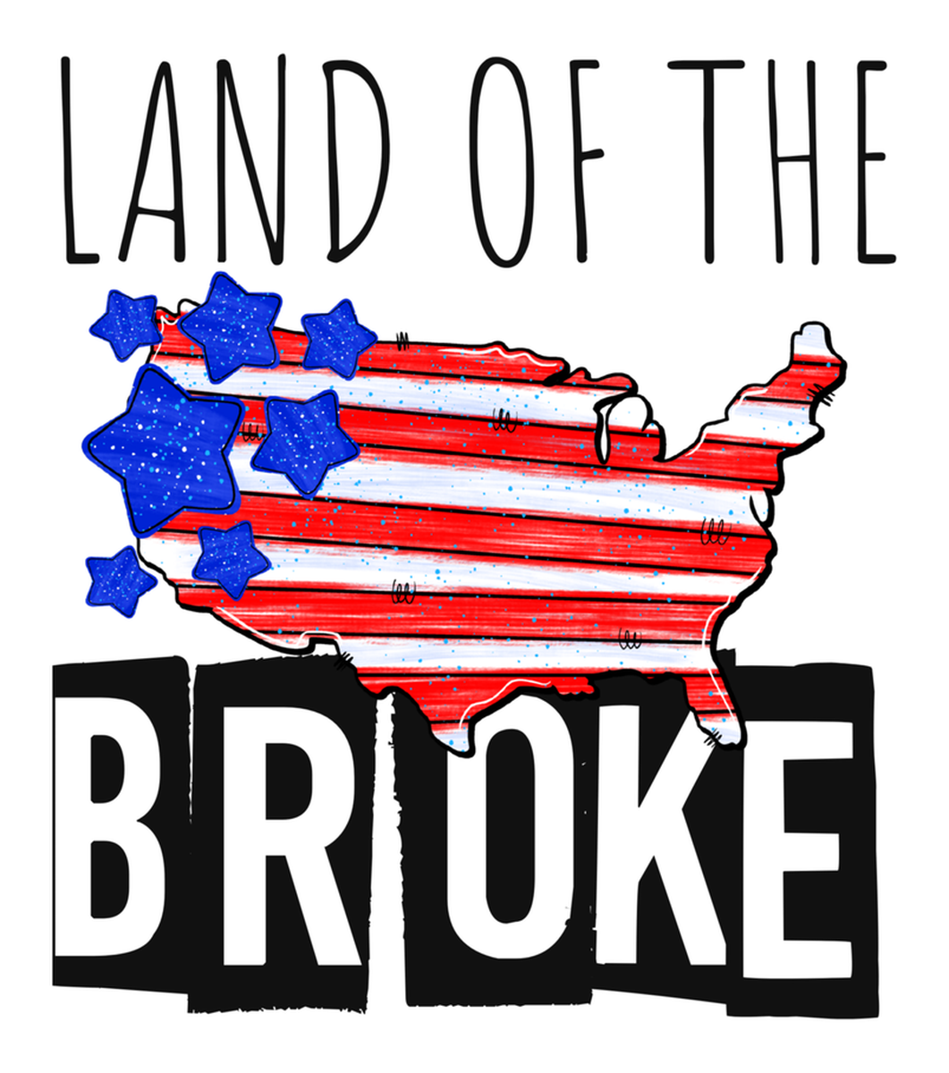Highlights • Ships from Washington! Shorter shipping distances are kinder to the planet • Free shipping Materials: eco solvent ink, premium outdoor grade vinyl This is for one (1) 3.54 x 4 inch die cut vinyl waterproof sticker. Sticker decal featuring a graphic design that resembles a small sticker with a patriotic theme, including an American flag, stars, and stripes, alongside the text "Land of the Broke." The style is reminiscent of a comic book or hand-drawn image, using bold colors and rough edges to convey a message. Sticker decal is indoor and outdoor (UV) safe. These high quality decal stickers are thick and durable and can be used many ways and on many items such as car windows, walls, lockers, tumblers, wine glasses, notebooks, planners, mirrors, cellphone cases, and more. Makes a great gift! Funny waterproof sticker - weatherproof bumper sticker - vinyl decal
