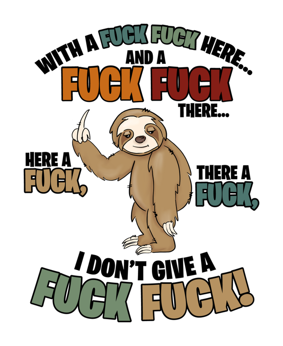 Highlights • Ships from Washington! Shorter shipping distances are kinder to the planet • Free shipping Materials: eco solvent ink, premium outdoor grade vinyl This is for one (1) 3.27 x 4 inch die cut vinyl waterproof sticker. Sticker decal: A humorous cartoon depicts a sloth with a finger pointing upwards, holding a speech bubble saying "with a f**k here and a f**k there". The phrase continues "there, there, there, there, there, there" in red text below the sloth's speech bubble. Below this, another speech bubble reads "Here I am with a f**k there". The cartoon is colorful and features text that adds to its humor. Sticker decal is indoor and outdoor (UV) safe. These high quality decal stickers are thick and durable and can be used many ways and on many items such as car windows, walls, lockers, tumblers, wine glasses, notebooks, planners, mirrors, cellphone cases, and more. Makes a great gift! Funny waterproof sticker - weatherproof bumper sticker - vinyl decal