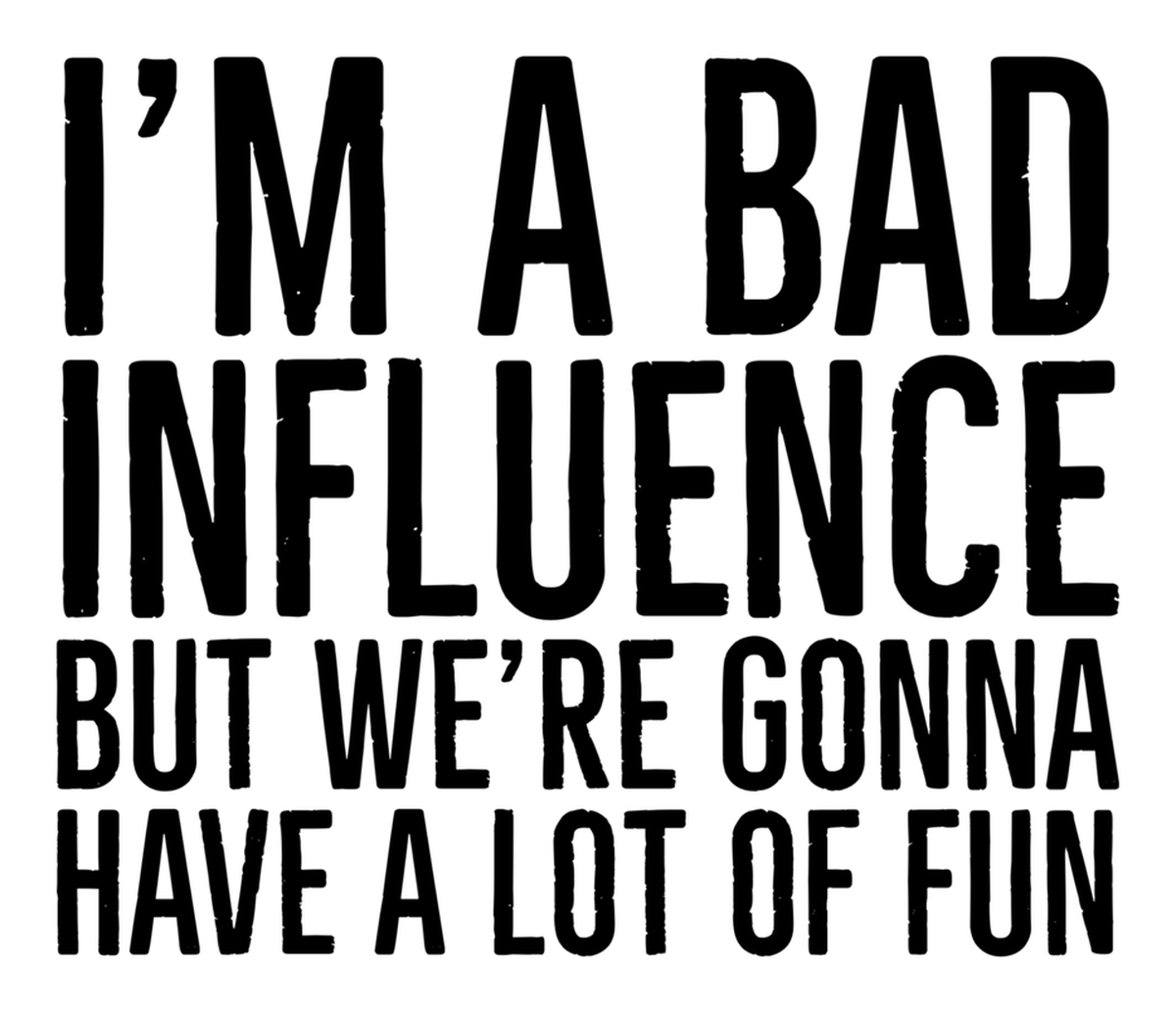 Highlights • Ships from Washington! Shorter shipping distances are kinder to the planet • Free shipping Materials: eco solvent ink, premium outdoor grade vinyl This is for one (1) 4 x 3.45 inch die cut vinyl waterproof sticker. Sticker decal featuring a white speech bubble-shaped image with a quote that says "I'm bad influence but we're gonna have a lot of fun" written in black text, with a white border framing the image. Sticker decal is indoor and outdoor (UV) safe. These high quality decal stickers are thick and durable and can be used many ways and on many items such as car windows, walls, lockers, tumblers, wine glasses, notebooks, planners, mirrors, cellphone cases, and more. Makes a great gift! Funny waterproof sticker - weatherproof bumper sticker - vinyl decal