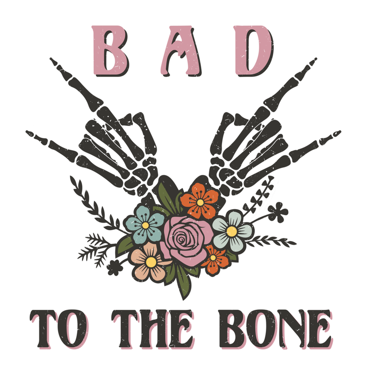Highlights • Ships from Washington! Shorter shipping distances are kinder to the planet • Free shipping Materials: eco solvent ink, premium outdoor grade vinyl This is for one (1) 3.91 x 4 inch die cut vinyl waterproof sticker. Sticker decal featuring a stylized emblem with tattoo-like decorations and vibrant flowers atop, against a black background. The text "BAD TO THE BONE" and "TO THE BONE" are prominently displayed in white and pink letters, respectively. Sticker decal is indoor and outdoor (UV) safe. These high quality decal stickers are thick and durable and can be used many ways and on many items such as car windows, walls, lockers, tumblers, wine glasses, notebooks, planners, mirrors, cellphone cases, and more. Makes a great gift! Funny waterproof sticker - weatherproof bumper sticker - vinyl decal