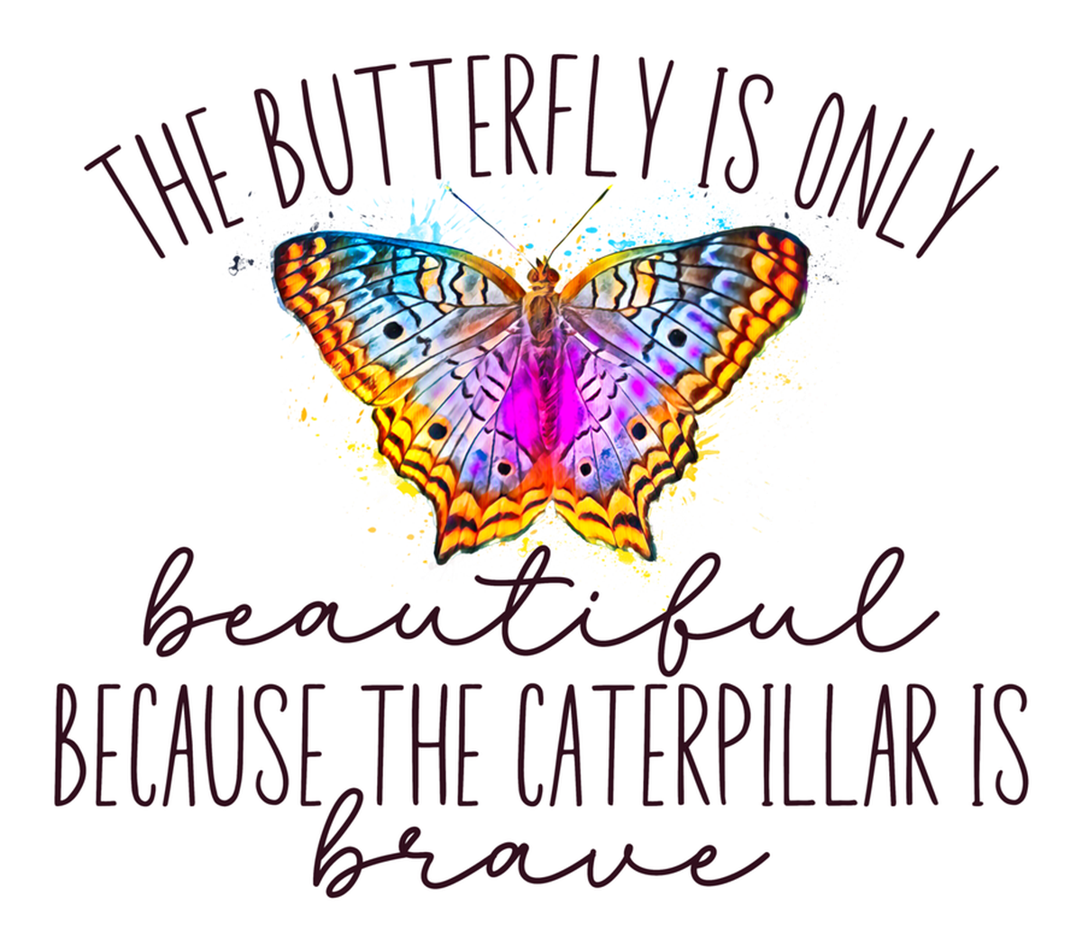 Highlights • Ships from Washington! Shorter shipping distances are kinder to the planet • Free shipping Materials: eco solvent ink, premium outdoor grade vinyl This is for one (1) 4 x 3.52 inch die cut vinyl waterproof sticker. Sticker decal of a butterfly quote: "The butterfly is only beautiful because the caterpillar is brave." A butterfly, purple, pink and yellow, in front of an inspirational quote about butterflies. Sticker decal is indoor and outdoor (UV) safe. These high quality decal stickers are thick and durable and can be used many ways and on many items such as car windows, walls, lockers, tumblers, wine glasses, notebooks, planners, mirrors, cellphone cases, and more. Makes a great gift! Funny waterproof sticker - weatherproof bumper sticker - vinyl decal