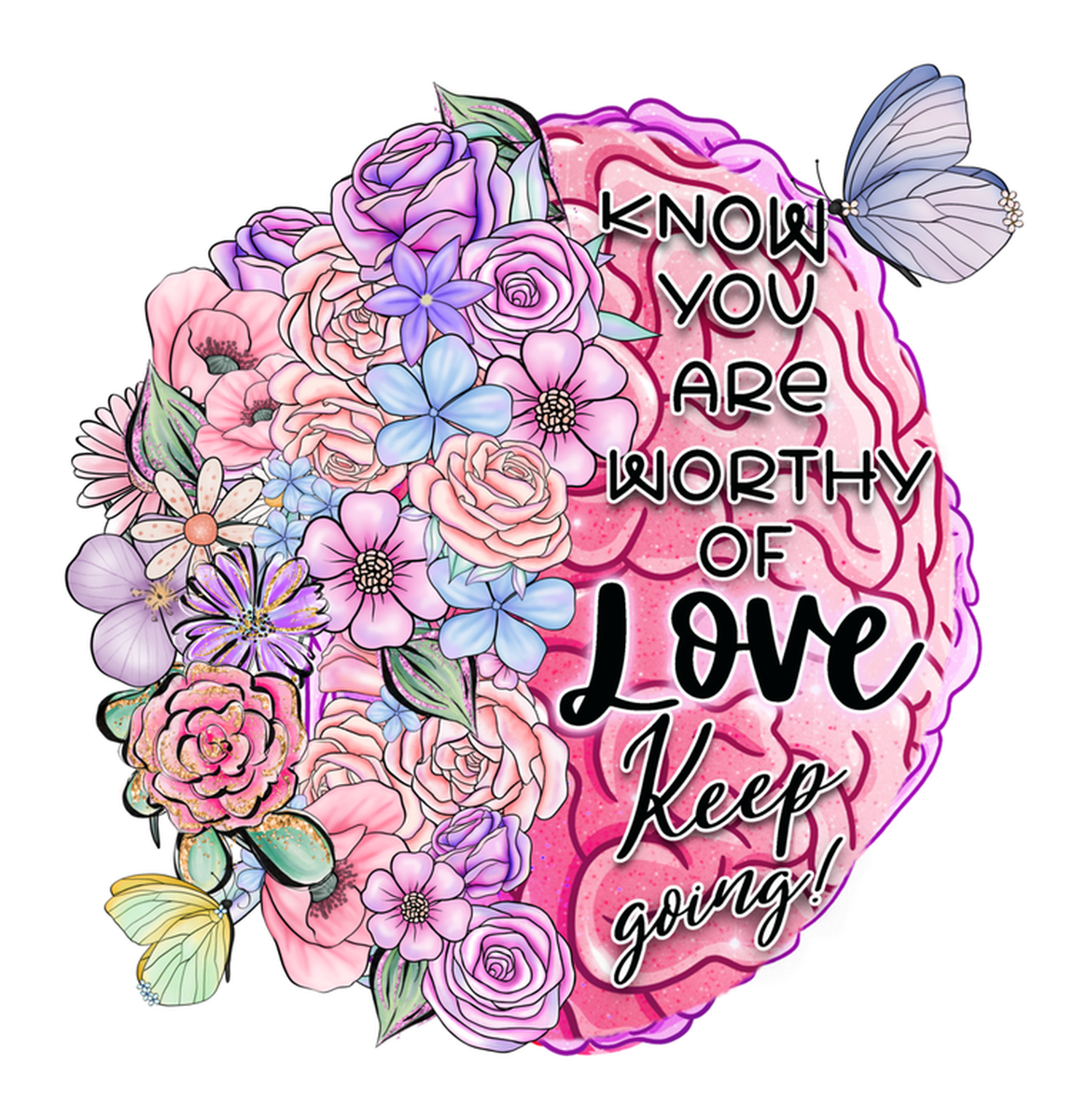 Highlights • Ships from Washington! Shorter shipping distances are kinder to the planet • Free shipping Materials: eco solvent ink, premium outdoor grade vinyl This is for one (1) 3.89 x 4 inch die cut vinyl waterproof sticker. Sticker decal featuring colorful flowers, butterflies, and floral crown designs in various hues such as pink, purple, blue, white, and yellow, with text that reads "I know you are worthy of love". Sticker decal is indoor and outdoor (UV) safe. These high quality decal stickers are thick and durable and can be used many ways and on many items such as car windows, walls, lockers, tumblers, wine glasses, notebooks, planners, mirrors, cellphone cases, and more. Makes a great gift! Funny waterproof sticker - weatherproof bumper sticker - vinyl decal