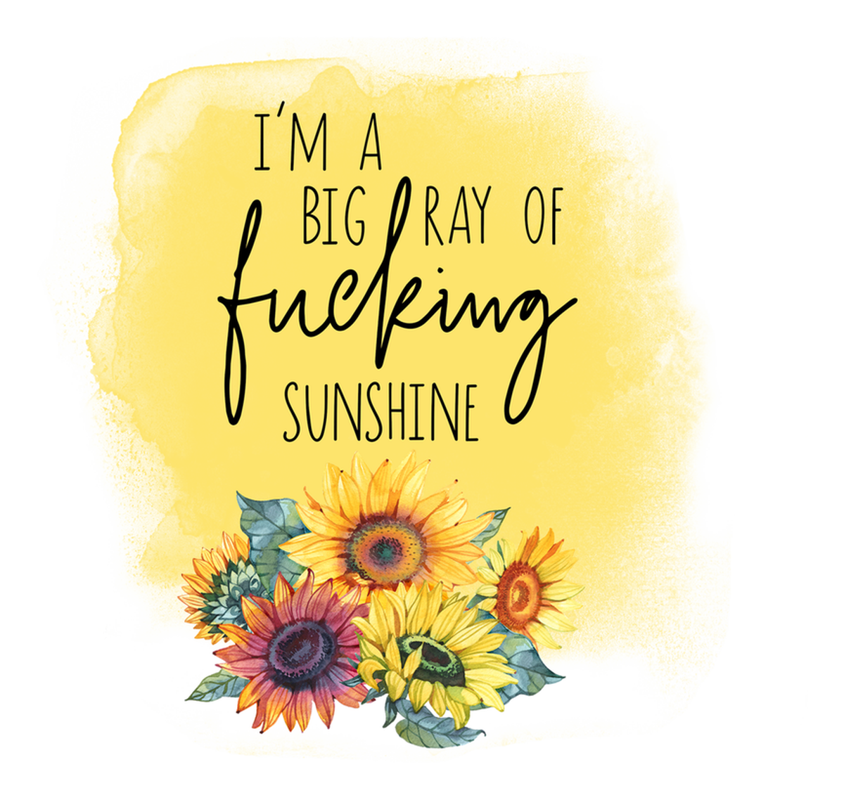 Highlights • Ships from Washington! Shorter shipping distances are kinder to the planet • Free shipping Materials: eco solvent ink, premium outdoor grade vinyl This is for one (1) 4 x 3.79 inch die cut vinyl waterproof sticker. Sticker decal featuring a yellow background with hand-drawn sunflowers in varying shades of orange, brown, and purple. The text overlay is in black ink and reads 'I'M A BIG FUCKING SUNSHINE. Sticker decal is indoor and outdoor (UV) safe. These high quality decal stickers are thick and durable and can be used many ways and on many items such as car windows, walls, lockers, tumblers, wine glasses, notebooks, planners, mirrors, cellphone cases, and more. Makes a great gift! Funny waterproof sticker - weatherproof bumper sticker - vinyl decal