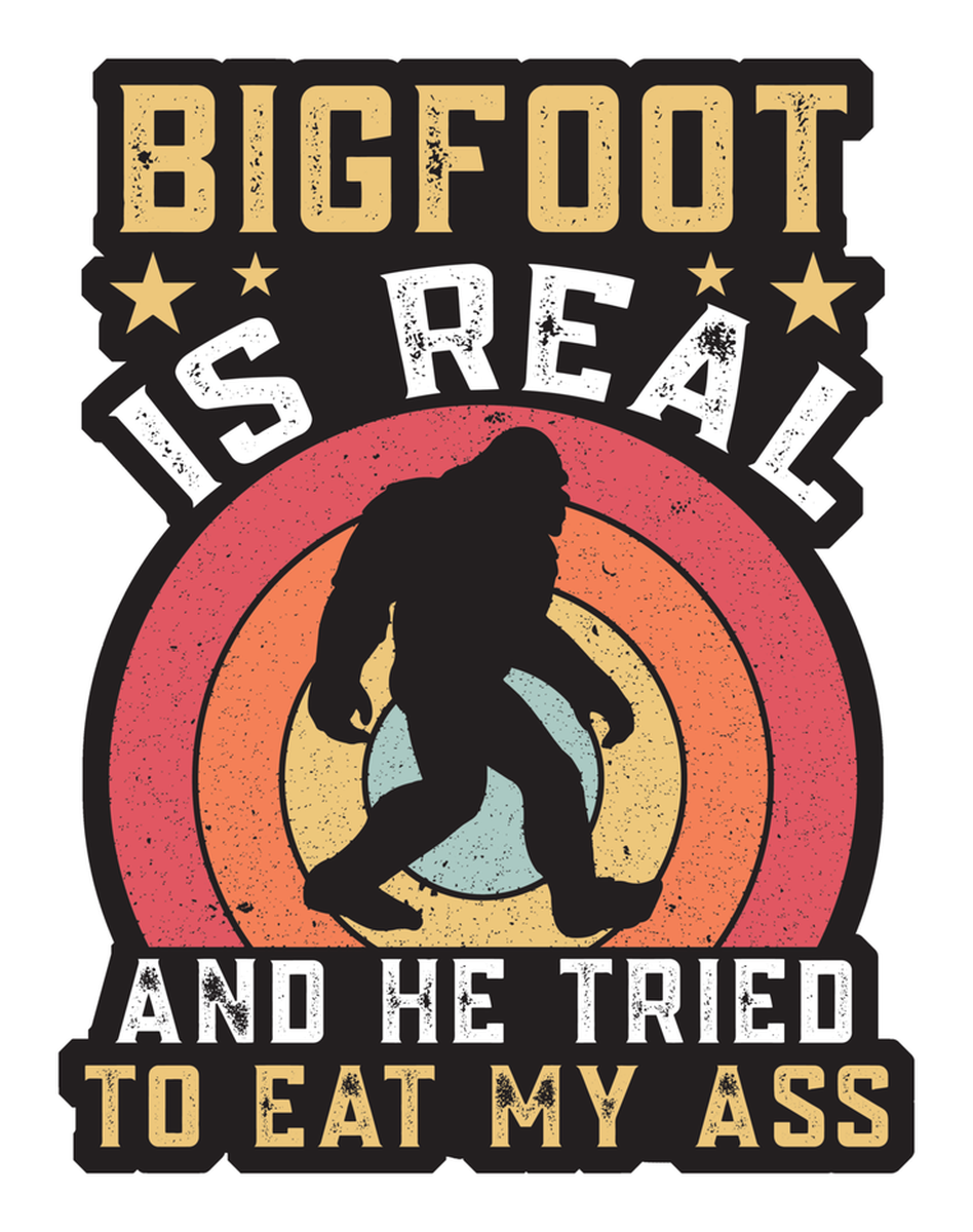 Highlights • Ships from Washington! Shorter shipping distances are kinder to the planet • Free shipping Materials: eco solvent ink, premium outdoor grade vinyl This is for one (1) 3.16 x 4 inch die cut vinyl waterproof sticker. Sticker decal: An orange sticker features a bold text that reads "BIGFOOT IS REAL" in white letters, accompanied by an image of a cartoon Bigfoot holding a sign that reads "he tried to eat my ass," below a rainbow-colored flag with the word "RAINBOW." The sticker is set against a gray background. Sticker decal is indoor and outdoor (UV) safe. These high quality decal stickers are thick and durable and can be used many ways and on many items such as car windows, walls, lockers, tumblers, wine glasses, notebooks, planners, mirrors, cellphone cases, and more. Makes a great gift! Funny waterproof sticker - weatherproof bumper sticker - vinyl decal