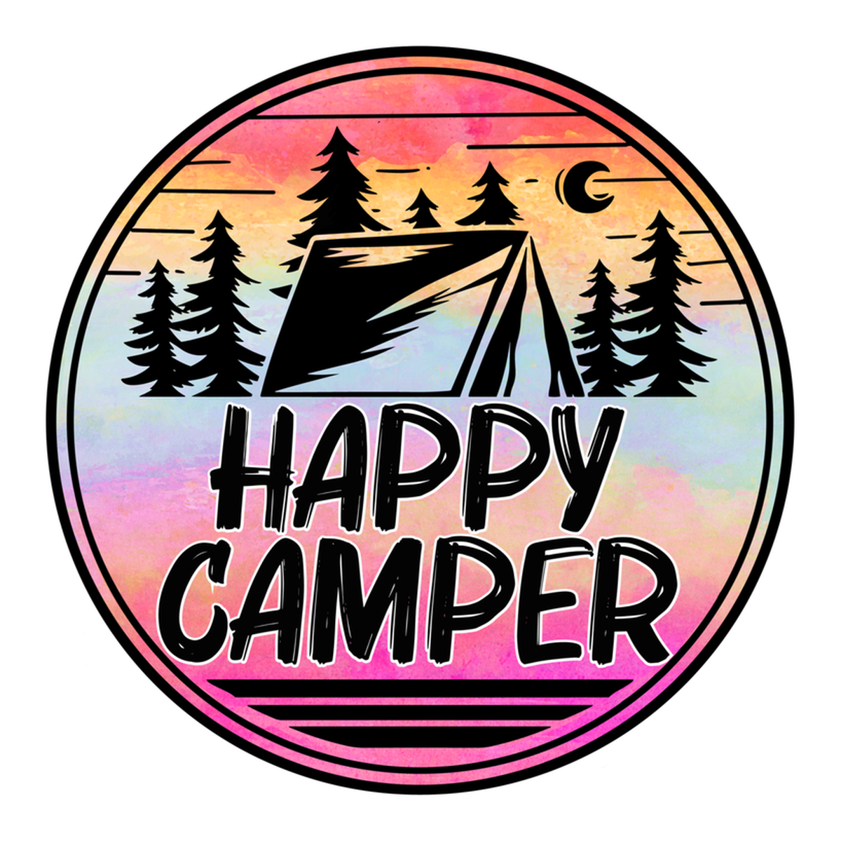 Highlights • Ships from Washington! Shorter shipping distances are kinder to the planet • Free shipping Materials: eco solvent ink, premium outdoor grade vinyl This is for one (1) 4 x 4 inch die cut vinyl waterproof sticker. Sticker decal: A colorful circular sticker features a camping scene with trees, a tent, and the word "Happy Camper" in the center, suggesting a theme of outdoor adventure or leisure travel. The style is illustrative and playful, using bright colors to create a cheerful atmosphere. Sticker decal is indoor and outdoor (UV) safe. These high quality decal stickers are thick and durable and can be used many ways and on many items such as car windows, walls, lockers, tumblers, wine glasses, notebooks, planners, mirrors, cellphone cases, and more. Makes a great gift! Funny waterproof sticker - weatherproof bumper sticker - vinyl decal