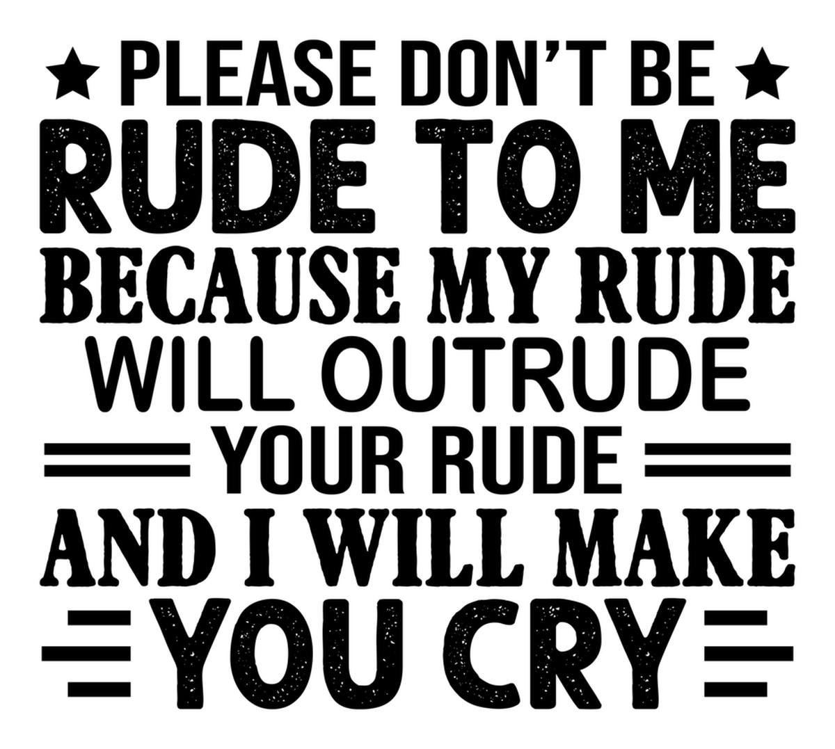 Highlights • Ships from Washington! Shorter shipping distances are kinder to the planet • Free shipping Materials: eco solvent ink, premium outdoor grade vinyl This is for one (1) 4 x 3.59 inch die cut vinyl waterproof sticker. Sticker decal: A black and white graphic featuring a quote with a vintage style font. The quote reads "Please don't be rude to me because I will outcryd you," followed by "and make you cry." The design has a rustic, hand-made appearance and includes decorative elements like stars and a heart. Sticker decal is indoor and outdoor (UV) safe. These high quality decal stickers are thick and durable and can be used many ways and on many items such as car windows, walls, lockers, tumblers, wine glasses, notebooks, planners, mirrors, cellphone cases, and more. Makes a great gift! Funny waterproof sticker - weatherproof bumper sticker - vinyl decal