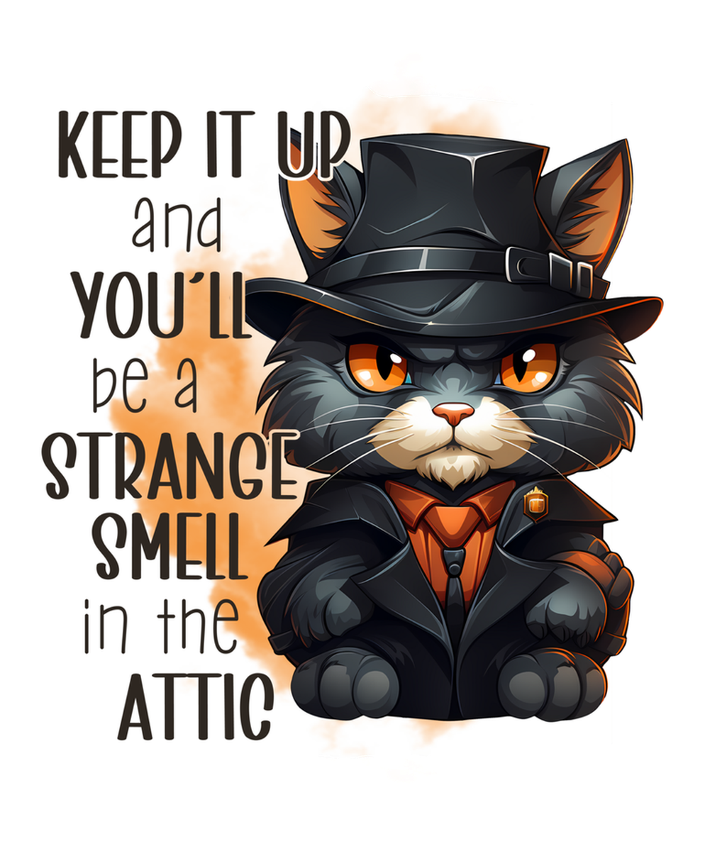 Highlights • Ships from Washington! Shorter shipping distances are kinder to the planet • Free shipping Materials: eco solvent ink, premium outdoor grade vinyl This is for one (1) 3.31 x 4 inch die cut vinyl waterproof sticker. Sticker decal: A black and orange cat with an evil smirk sits in a cartoon depiction of an attic, dressed as a detective, holding a magnifying glass, keeping up the words "keep it up and you'll be a strange smell in my attic. Sticker decal is indoor and outdoor (UV) safe. These high quality decal stickers are thick and durable and can be used many ways and on many items such as car windows, walls, lockers, tumblers, wine glasses, notebooks, planners, mirrors, cellphone cases, and more. Makes a great gift! Funny waterproof sticker - weatherproof bumper sticker - vinyl decal