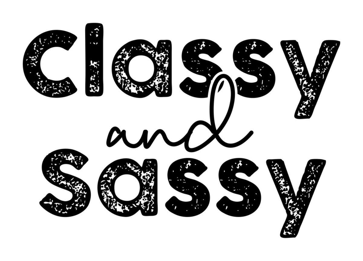 Highlights • Ships from Washington! Shorter shipping distances are kinder to the planet • Free shipping Materials: eco solvent ink, premium outdoor grade vinyl This is for one (1) 4 x 2.87 inch die cut vinyl waterproof sticker. Sticker decal: Black and white image of handwritten text that reads "Classy and sassy" on a plain white background. The text is in all capital letters, indicating a casual and fun style. Sticker decal is indoor and outdoor (UV) safe. These high quality decal stickers are thick and durable and can be used many ways and on many items such as car windows, walls, lockers, tumblers, wine glasses, notebooks, planners, mirrors, cellphone cases, and more. Makes a great gift! Funny waterproof sticker - weatherproof bumper sticker - vinyl decal