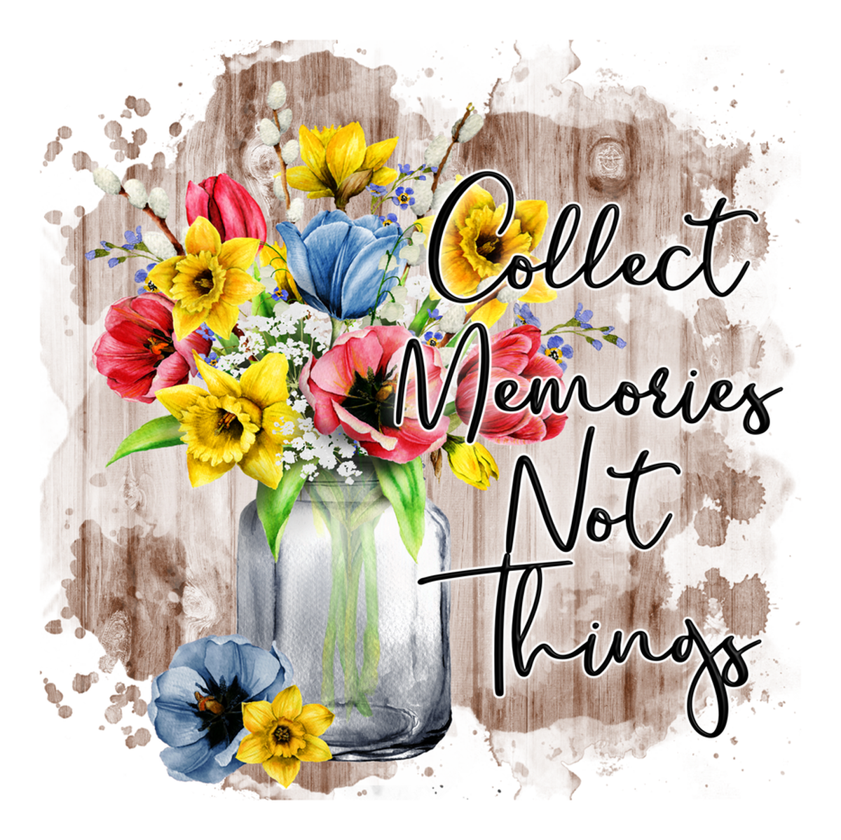 Highlights • Ships from Washington! Shorter shipping distances are kinder to the planet • Free shipping Materials: eco solvent ink, premium outdoor grade vinyl This is for one (1) 4 x 4 inch die cut vinyl waterproof sticker. Sticker decal featuring an illustrated vase of colorful flowers overlaying a quote "Collect memories not things" in a stylized script font, on a textured wood grain background. Sticker decal is indoor and outdoor (UV) safe. These high quality decal stickers are thick and durable and can be used many ways and on many items such as car windows, walls, lockers, tumblers, wine glasses, notebooks, planners, mirrors, cellphone cases, and more. Makes a great gift! Funny waterproof sticker - weatherproof bumper sticker - vinyl decal