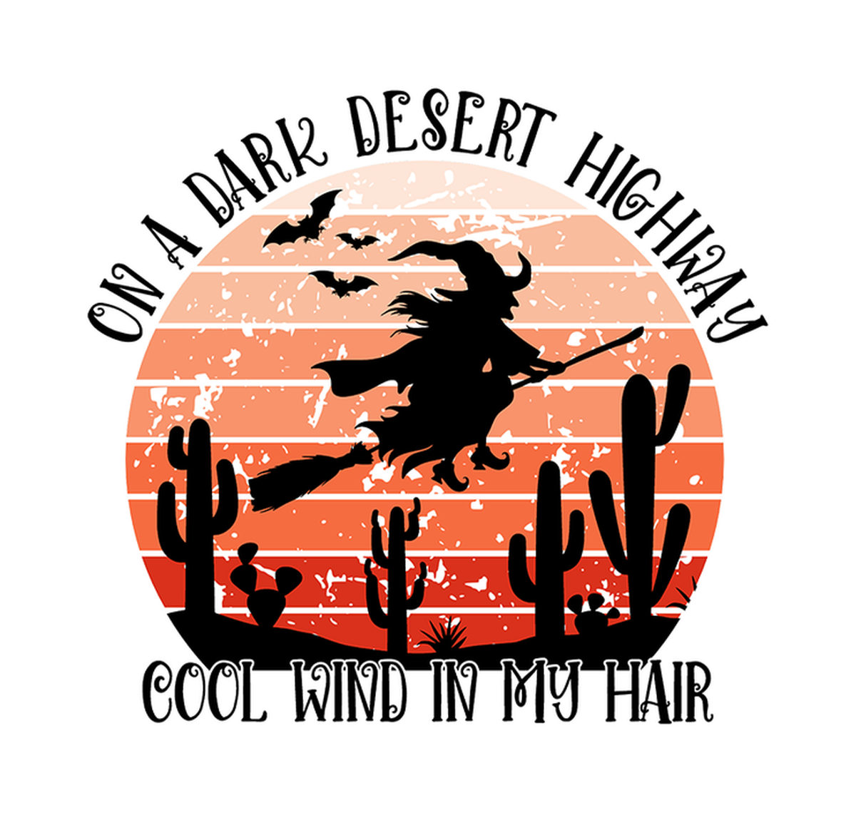 Highlights • Ships from Washington! Shorter shipping distances are kinder to the planet • Free shipping Materials: eco solvent ink, premium outdoor grade vinyl This is for one (1) 4 x 3.81 inch die cut vinyl waterproof sticker. Sticker decal featuring a desert highway scene at sunset or sunrise with silhouette of witch on broomstick, bat, cacti, cool wind in my hair, and text reading "on a dark desert highway. Sticker decal is indoor and outdoor (UV) safe. These high quality decal stickers are thick and durable and can be used many ways and on many items such as car windows, walls, lockers, tumblers, wine glasses, notebooks, planners, mirrors, cellphone cases, and more. Makes a great gift! Funny waterproof sticker - weatherproof bumper sticker - vinyl decal