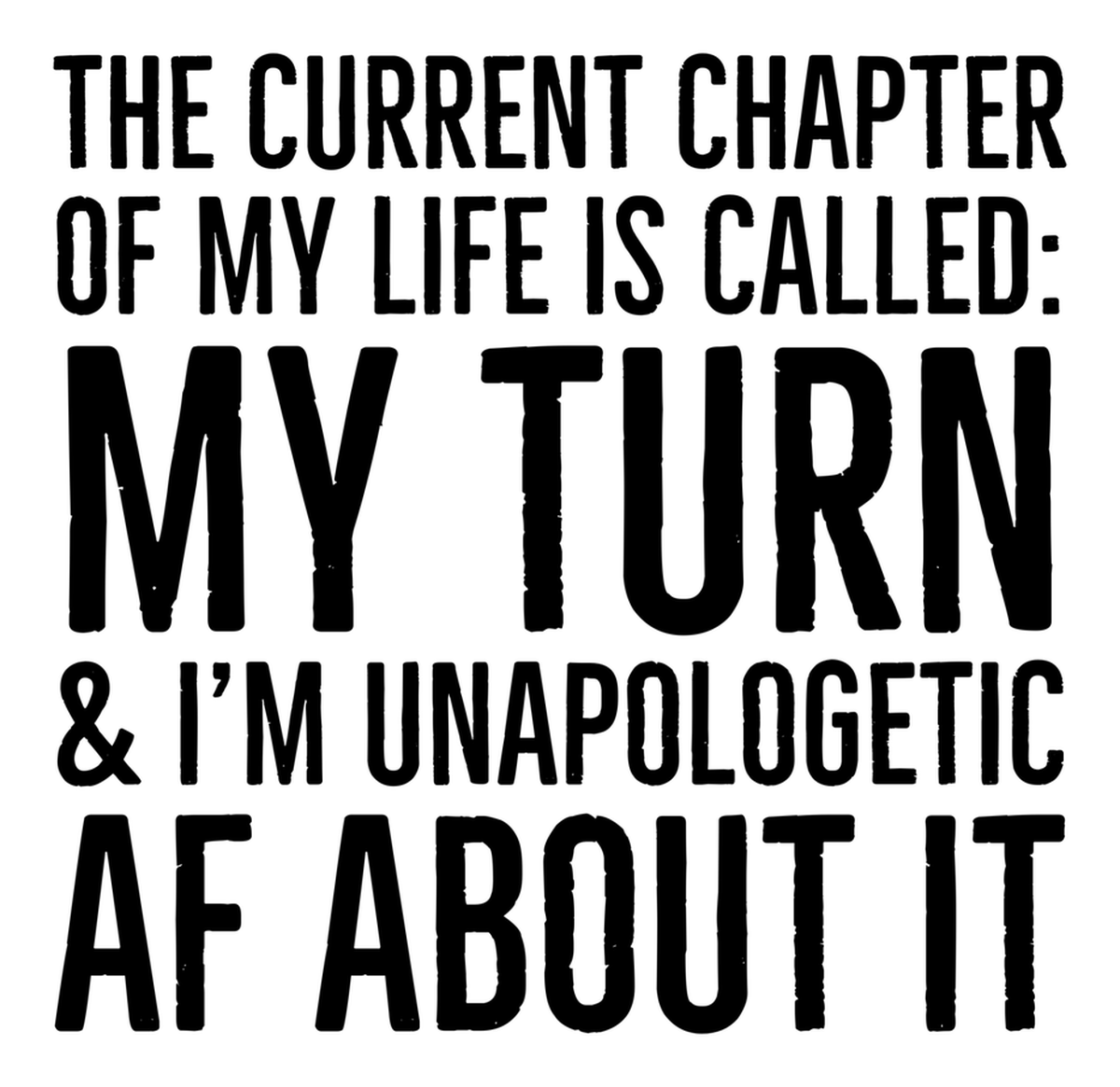 Highlights • Ships from Washington! Shorter shipping distances are kinder to the planet • Free shipping Materials: eco solvent ink, premium outdoor grade vinyl This is for one (1) 4 x 3.88 inch die cut vinyl waterproof sticker. Sticker decal of a quote: "The current chapter of my life is called My Turn & I am unapologetic about it." (text in white font on black background). Sticker decal is indoor and outdoor (UV) safe. These high quality decal stickers are thick and durable and can be used many ways and on many items such as car windows, walls, lockers, tumblers, wine glasses, notebooks, planners, mirrors, cellphone cases, and more. Makes a great gift! Funny waterproof sticker - weatherproof bumper sticker - vinyl decal