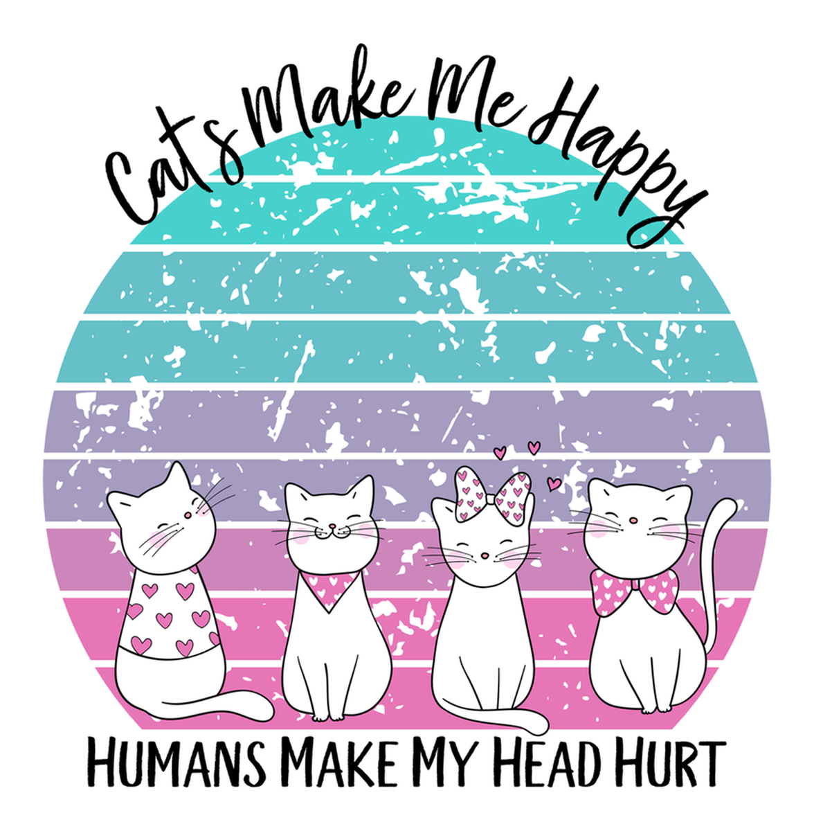 Highlights • Ships from Washington! Shorter shipping distances are kinder to the planet • Free shipping Materials: eco solvent ink, premium outdoor grade vinyl This is for one (1) 3.92 x 4 inch die cut vinyl waterproof sticker. Sticker decal with cartoon illustration of three cats wearing human-like clothes and accessories with text: "CATS MAKE ME HAPPY HUMANS MAKE MY HEAD HURT". Sticker decal is indoor and outdoor (UV) safe. These high quality decal stickers are thick and durable and can be used many ways and on many items such as car windows, walls, lockers, tumblers, wine glasses, notebooks, planners, mirrors, cellphone cases, and more. Makes a great gift! Funny waterproof sticker - weatherproof bumper sticker - vinyl decal