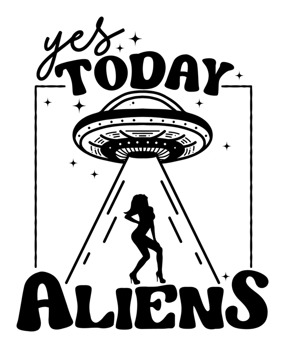 Highlights • Ships from Washington! Shorter shipping distances are kinder to the planet • Free shipping Materials: eco solvent ink, premium outdoor grade vinyl This is for one (1) 3.28 x 4 inch die cut vinyl waterproof sticker. Sticker decal. Black and white illustration of a woman dancing in front of an alien spaceship. Text "Yes today" and "aliens" in the corners, set against a starry night sky. Sticker decal is indoor and outdoor (UV) safe. These high quality decal stickers are thick and durable and can be used many ways and on many items such as car windows, walls, lockers, tumblers, wine glasses, notebooks, planners, mirrors, cellphone cases, and more. Makes a great gift! Funny waterproof sticker - weatherproof bumper sticker - vinyl decal