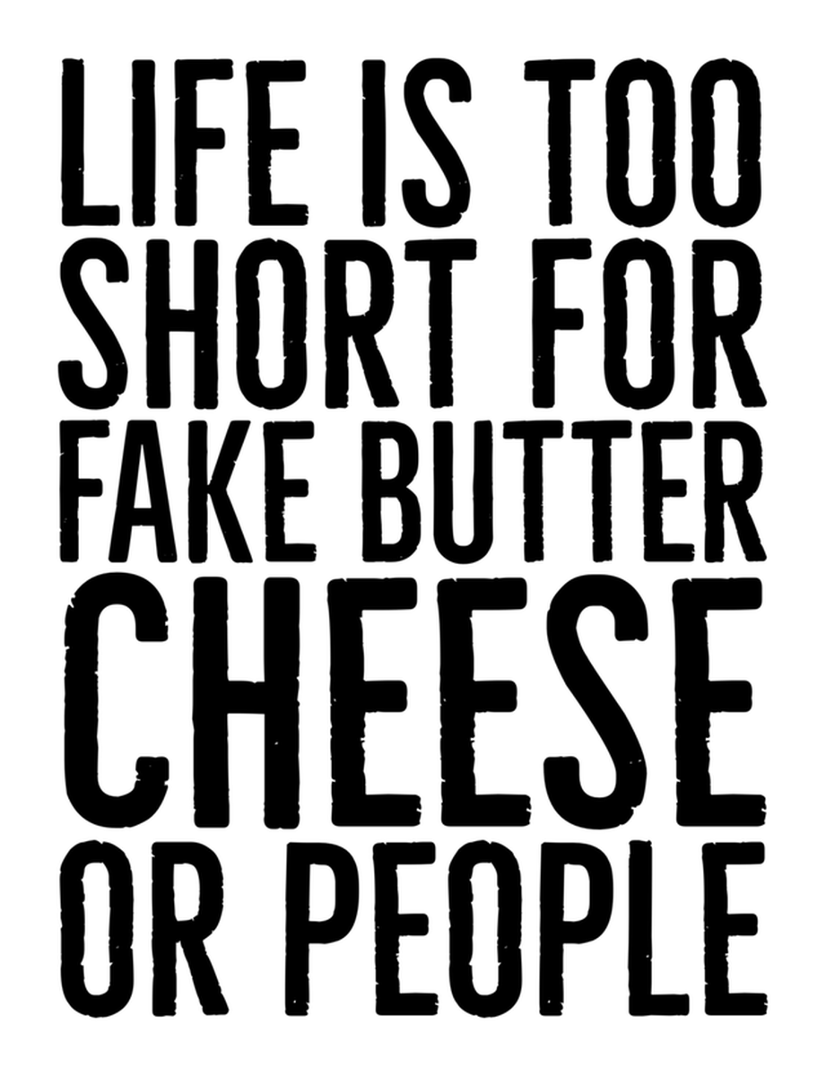 Highlights • Ships from Washington! Shorter shipping distances are kinder to the planet • Free shipping Materials: eco solvent ink, premium outdoor grade vinyl This is for one (1) 3.07 x 4 inch die cut vinyl waterproof sticker. Sticker decal of motivational message "Life is too short for fake butter or cheese or people" overlaid on a black background, in white text. Sticker decal is indoor and outdoor (UV) safe. These high quality decal stickers are thick and durable and can be used many ways and on many items such as car windows, walls, lockers, tumblers, wine glasses, notebooks, planners, mirrors, cellphone cases, and more. Makes a great gift! Funny waterproof sticker - weatherproof bumper sticker - vinyl decal