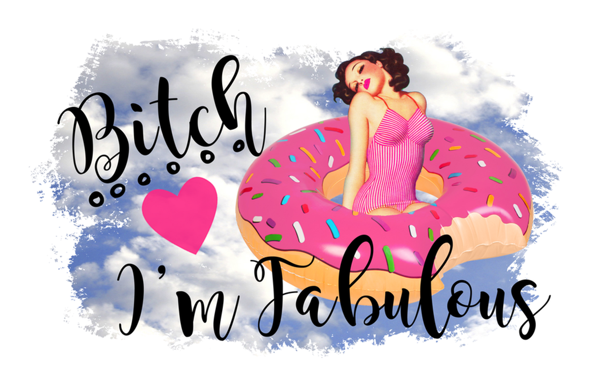 Highlights • Ships from Washington! Shorter shipping distances are kinder to the planet • Free shipping Materials: eco solvent ink, premium outdoor grade vinyl This is for one (1) 4 x 2.61 inch die cut vinyl waterproof sticker. Sticker decal with illustration of a woman sitting on top of a large donut. She is dressed in retro style lingerie, possibly from the 1940s or 1950s. The phrase "BITCH I'M FABULOUS" is written over the artwork, with a stylized heart shape below it. Sticker decal is indoor and outdoor (UV) safe. These high quality decal stickers are thick and durable and can be used many ways and on many items such as car windows, walls, lockers, tumblers, wine glasses, notebooks, planners, mirrors, cellphone cases, and more. Makes a great gift! Funny waterproof sticker - weatherproof bumper sticker - vinyl decal
