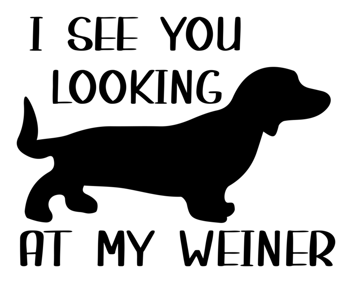 Highlights • Ships from Washington! Shorter shipping distances are kinder to the planet • Free shipping Materials: eco solvent ink, premium outdoor grade vinyl This is for one (1) 4 x 3.21 inch die cut vinyl waterproof sticker. Sticker decal: Black-and-white photo of dog looking up, text says, "I see you looking at my wiener". Sticker decal is indoor and outdoor (UV) safe. These high quality decal stickers are thick and durable and can be used many ways and on many items such as car windows, walls, lockers, tumblers, wine glasses, notebooks, planners, mirrors, cellphone cases, and more. Makes a great gift! Funny waterproof sticker - weatherproof bumper sticker - vinyl decal