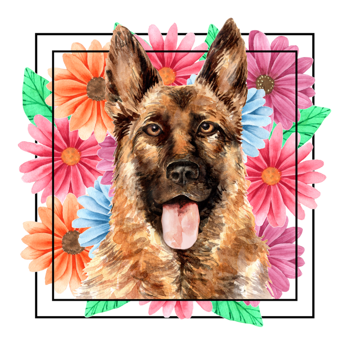 Highlights • Ships from Washington! Shorter shipping distances are kinder to the planet • Free shipping Materials: eco solvent ink, premium outdoor grade vinyl This is for one (1) 4 x 3.96 inch die cut vinyl waterproof sticker. Sticker decal features a close-up illustration of a German Shepherd dog with its tongue sticking out, surrounded by colorful flowers. The background is black, which makes the subject pop. Sticker decal is indoor and outdoor (UV) safe. These high quality decal stickers are thick and durable and can be used many ways and on many items such as car windows, walls, lockers, tumblers, wine glasses, notebooks, planners, mirrors, cellphone cases, and more. Makes a great gift! Funny waterproof sticker - weatherproof bumper sticker - vinyl decal