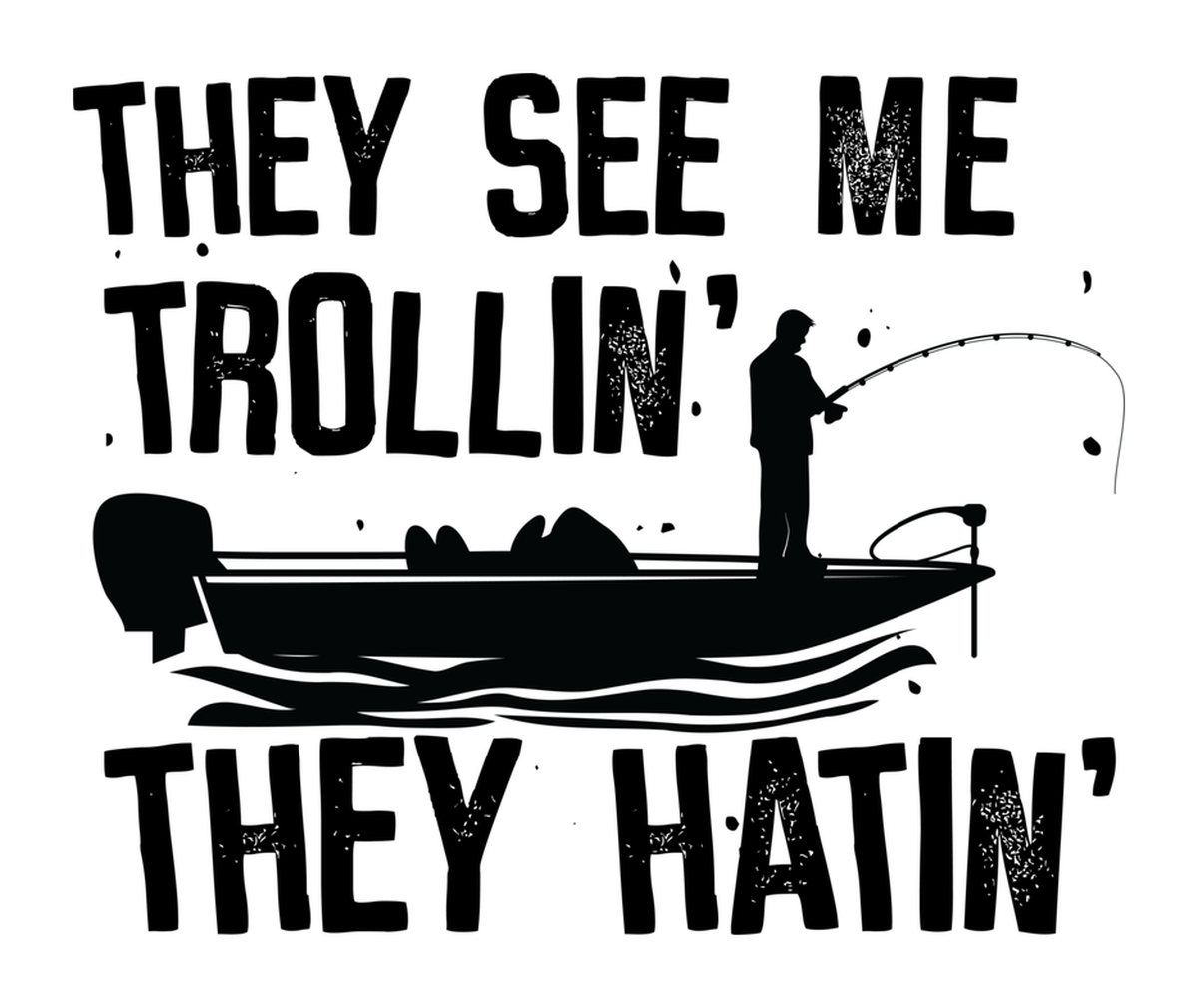 Highlights • Ships from Washington! Shorter shipping distances are kinder to the planet • Free shipping Materials: eco solvent ink, premium outdoor grade vinyl This is for one (1) 4 x 3.37 inch die cut vinyl waterproof sticker. Sticker decal with a black-and-white illustration of a man fishing in a boat, saying "They see me trollin', They hate me hatin'" in white text on a black background, framed by an oval border. Sticker decal is indoor and outdoor (UV) safe. These high quality decal stickers are thick and durable and can be used many ways and on many items such as car windows, walls, lockers, tumblers, wine glasses, notebooks, planners, mirrors, cellphone cases, and more. Makes a great gift! Funny waterproof sticker - weatherproof bumper sticker - vinyl decal