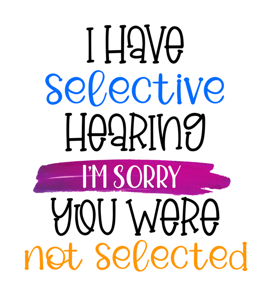 Highlights • Ships from Washington! Shorter shipping distances are kinder to the planet • Free shipping Materials: eco solvent ink, premium outdoor grade vinyl This is for one (1) 3.67 x 4 inch die cut vinyl waterproof sticker. Sticker decal: "I have selective hearing, sorry you weren't selected, you were not selected". Sticker decal is indoor and outdoor (UV) safe. These high quality decal stickers are thick and durable and can be used many ways and on many items such as car windows, walls, lockers, tumblers, wine glasses, notebooks, planners, mirrors, cellphone cases, and more. Makes a great gift! Funny waterproof sticker - weatherproof bumper sticker - vinyl decal