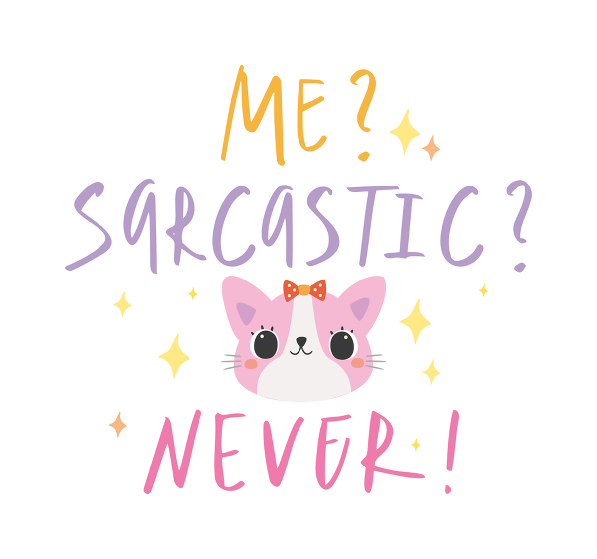 Highlights • Ships from Washington! Shorter shipping distances are kinder to the planet • Free shipping Materials: eco solvent ink, premium outdoor grade vinyl This is for one (1) 4 x 3.75 inch die cut vinyl waterproof sticker. Sticker decal: A cute cat image with a speech bubble that says "me? sarcastic? never!" in a playful font, and an accompanying text that reads "I?m sorry. me?" in a stylized handwriting font. The overall style is whimsical and cartoon-like, with the use of pastel colors. Sticker decal is indoor and outdoor (UV) safe. These high quality decal stickers are thick and durable and can be used many ways and on many items such as car windows, walls, lockers, tumblers, wine glasses, notebooks, planners, mirrors, cellphone cases, and more. Makes a great gift! Funny waterproof sticker - weatherproof bumper sticker - vinyl decal