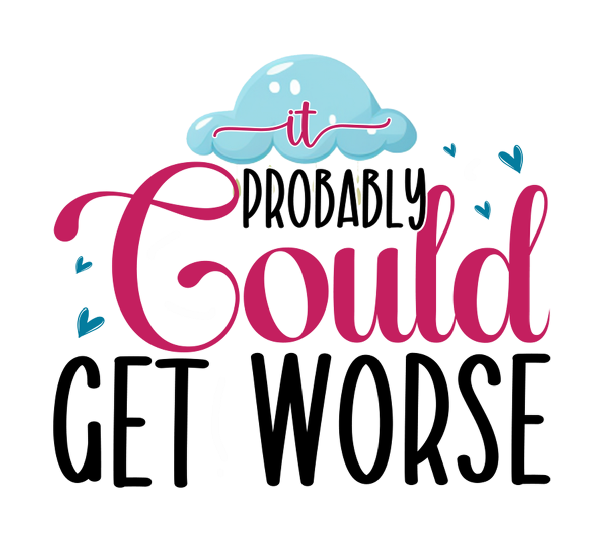 Highlights • Ships from Washington! Shorter shipping distances are kinder to the planet • Free shipping Materials: eco solvent ink, premium outdoor grade vinyl This is for one (1) 4 x 3.58 inch die cut vinyl waterproof sticker. Sticker decal with hand-drawn illustration of cloud in pink with hearts and raindrops; text above that reads "It could get worse" in a light blue font and below, "probably couldn't get worse" in a darker pink, set against a white background. Sticker decal is indoor and outdoor (UV) safe. These high quality decal stickers are thick and durable and can be used many ways and on many items such as car windows, walls, lockers, tumblers, wine glasses, notebooks, planners, mirrors, cellphone cases, and more. Makes a great gift! Funny waterproof sticker - weatherproof bumper sticker - vinyl decal