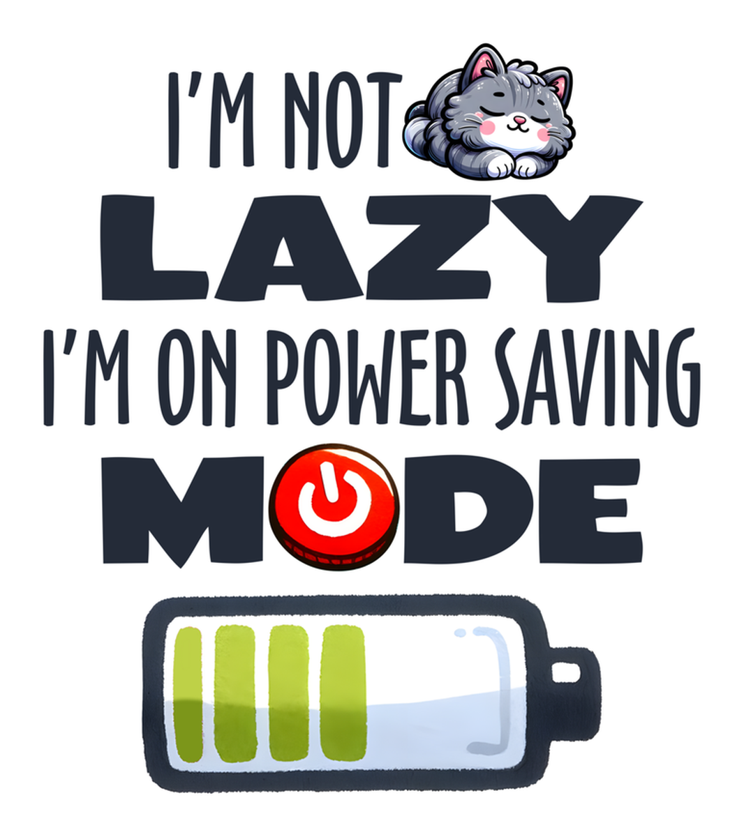 Highlights • Ships from Washington! Shorter shipping distances are kinder to the planet • Free shipping Materials: eco solvent ink, premium outdoor grade vinyl This is for one (1) 3.55 x 4 inch die cut vinyl waterproof sticker. Sticker decal: Cartoon sticker with a cat meme saying "I'm not lazy I'M on power saving mode". It features a cat, power button, and battery symbol in a playful cartoon style with a black background. Sticker decal is indoor and outdoor (UV) safe. These high quality decal stickers are thick and durable and can be used many ways and on many items such as car windows, walls, lockers, tumblers, wine glasses, notebooks, planners, mirrors, cellphone cases, and more. Makes a great gift! Funny waterproof sticker - weatherproof bumper sticker - vinyl decal