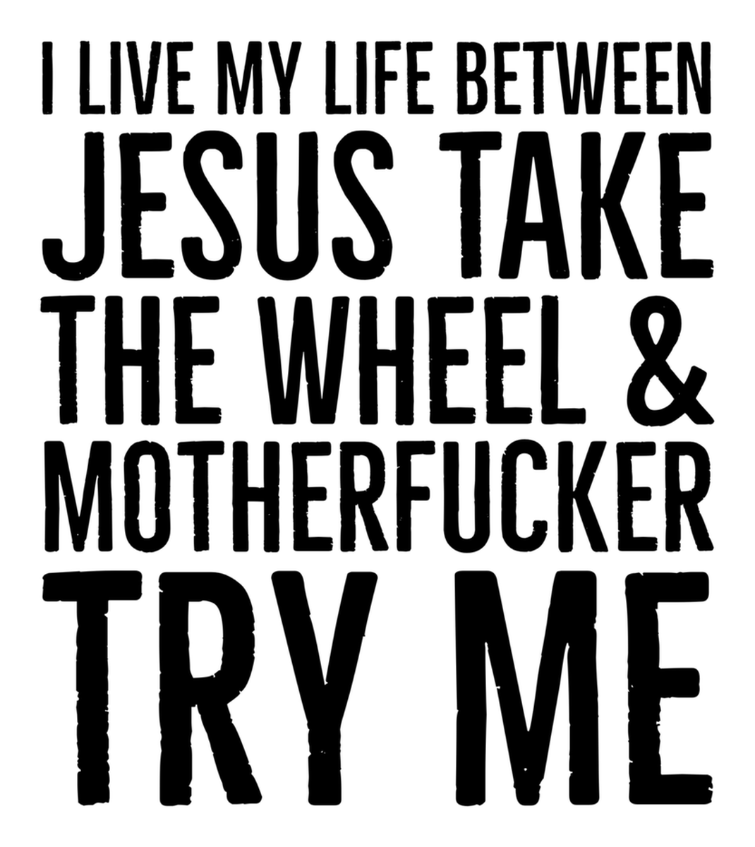 Highlights • Ships from Washington! Shorter shipping distances are kinder to the planet • Free shipping Materials: eco solvent ink, premium outdoor grade vinyl This is for one (1) 3.57 x 4 inch die cut vinyl waterproof sticker. Sticker decal: A black and white quote on a transparent background that says "I live my life between Jesus take the wheel & Jesus try me". Sticker decal is indoor and outdoor (UV) safe. These high quality decal stickers are thick and durable and can be used many ways and on many items such as car windows, walls, lockers, tumblers, wine glasses, notebooks, planners, mirrors, cellphone cases, and more. Makes a great gift! Funny waterproof sticker - weatherproof bumper sticker - vinyl decal