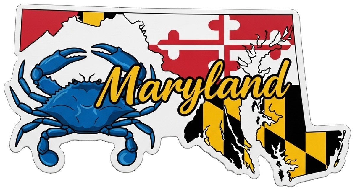 Highlights • Ships from Washington! Shorter shipping distances are kinder to the planet • Free shipping Materials: eco solvent ink, premium outdoor grade vinyl This is for one (1) 4 x 2.16 inch die cut vinyl waterproof sticker. Sticker decal: Blue lobster on blue background; Maryland flag in top right corner; black crab beside red banner stating "Maryland. Sticker decal is indoor and outdoor (UV) safe. These high quality decal stickers are thick and durable and can be used many ways and on many items such as car windows, walls, lockers, tumblers, wine glasses, notebooks, planners, mirrors, cellphone cases, and more. Makes a great gift! Funny waterproof sticker - weatherproof bumper sticker - vinyl decal