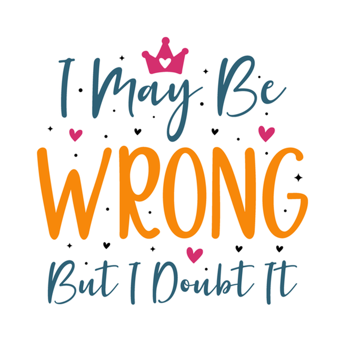 Highlights • Ships from Washington! Shorter shipping distances are kinder to the planet • Free shipping Materials: eco solvent ink, premium outdoor grade vinyl This is for one (1) 4 x 3.97 inch die cut vinyl waterproof sticker. Sticker decal features a heartfelt message that says "I may be wrong but I doubt it..." in blue cursive font, set against an orange background, with pink hearts scattered throughout and a crown on top. The phrase is a humorous commentary on self-confidence. Sticker decal is indoor and outdoor (UV) safe. These high quality decal stickers are thick and durable and can be used many ways and on many items such as car windows, walls, lockers, tumblers, wine glasses, notebooks, planners, mirrors, cellphone cases, and more. Makes a great gift! Funny waterproof sticker - weatherproof bumper sticker - vinyl decal