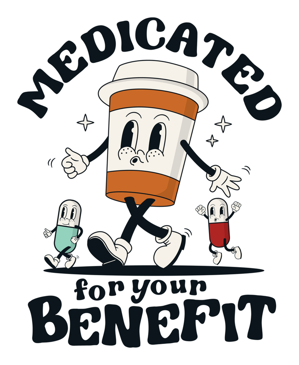 Highlights • Ships from Washington! Shorter shipping distances are kinder to the planet • Free shipping Materials: eco solvent ink, premium outdoor grade vinyl This is for one (1) 3.27 x 4 inch die cut vinyl waterproof sticker. Sticker decal: A black & white illustration of a cartoon character in a wheelchair holding a bottle of pills, with text that reads "MEDICATED FOR YOUR BENEFIT." The sticker features a bold statement about the importance of medication and support for people living with disability. It is a striking visual commentary on healthcare accessibility and the need for comprehensive care and support services for those who are differently-abled. Sticker decal is indoor and outdoor (UV) safe. These high quality decal stickers are thick and durable and can be used many ways and on many items such as car windows, walls, lockers, tumblers, wine glasses, notebooks, planners, mirrors, cellphone cases, and more. Makes a great gift! Funny waterproof sticker - weatherproof bumper sticker - vinyl decal