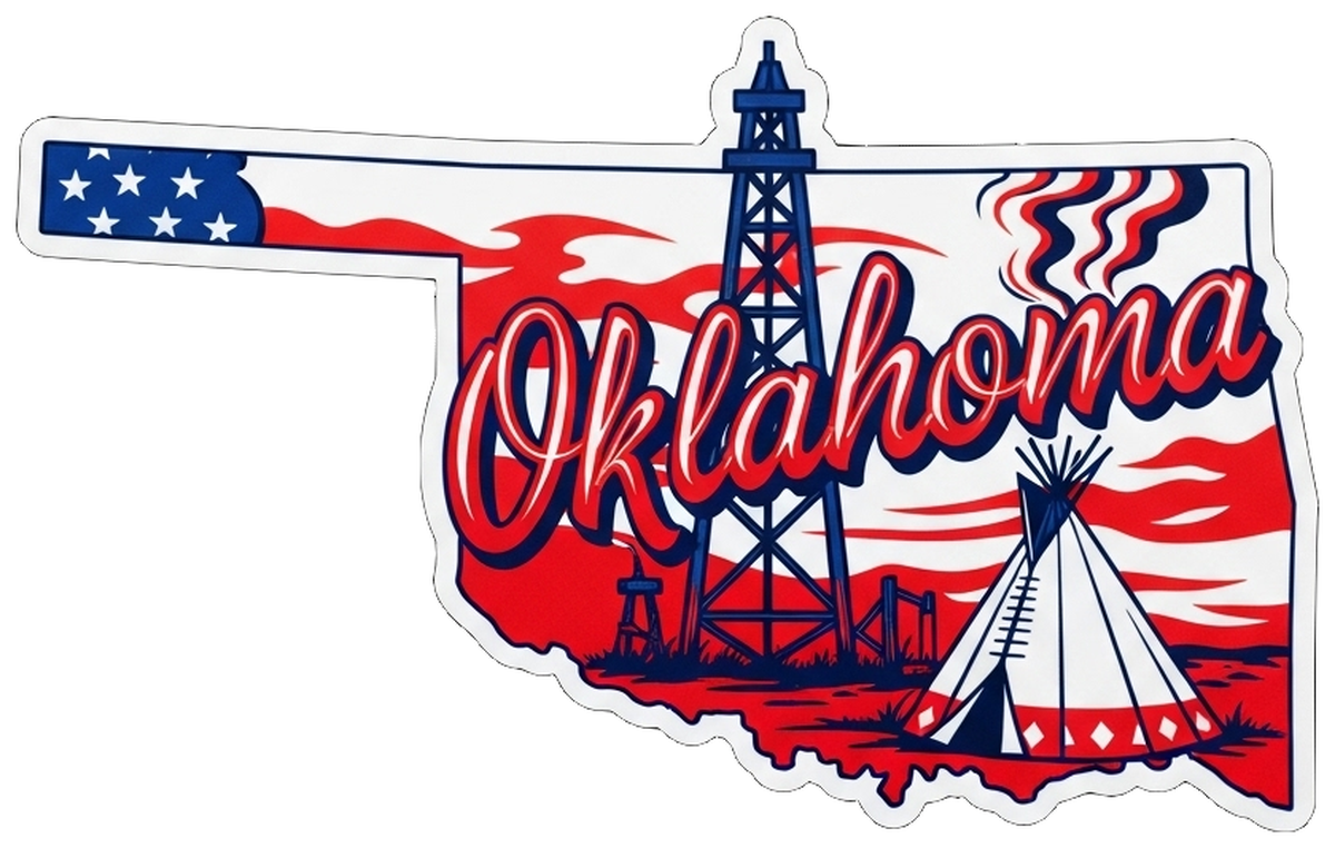 Highlights • Ships from Washington! Shorter shipping distances are kinder to the planet • Free shipping Materials: eco solvent ink, premium outdoor grade vinyl This is for one (1) 4 x 2.54 inch die cut vinyl waterproof sticker. Sticker decal: Red, white and blue sticker with a drawing of an oil rig next to the state name "Oklahoma" in red. Sticker decal is indoor and outdoor (UV) safe. These high quality decal stickers are thick and durable and can be used many ways and on many items such as car windows, walls, lockers, tumblers, wine glasses, notebooks, planners, mirrors, cellphone cases, and more. Makes a great gift! Funny waterproof sticker - weatherproof bumper sticker - vinyl decal