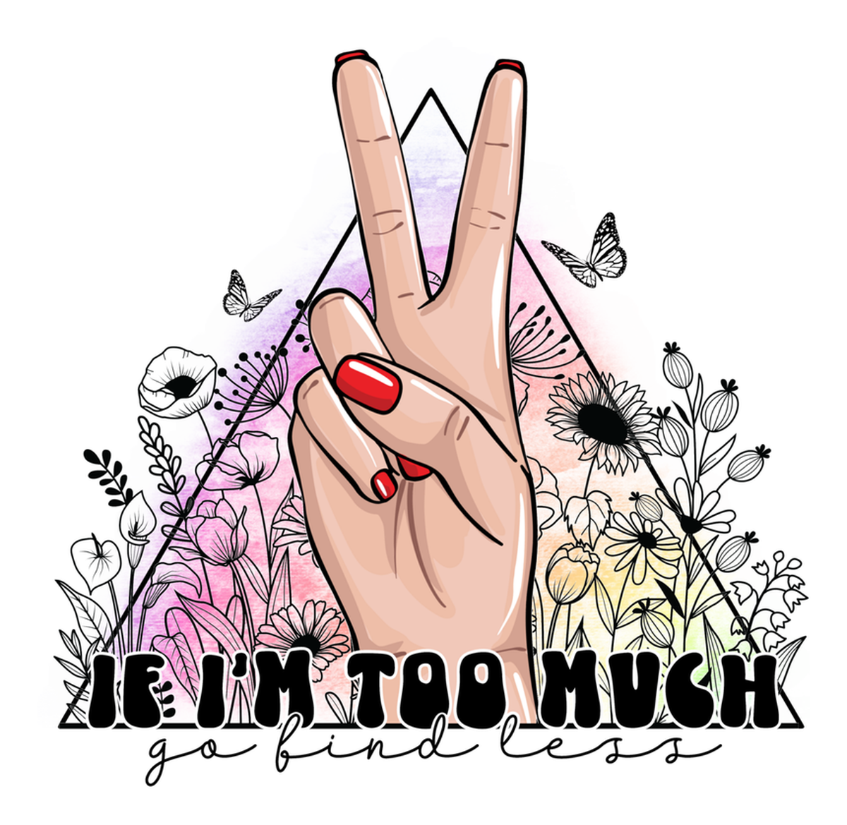 Highlights • Ships from Washington! Shorter shipping distances are kinder to the planet • Free shipping Materials: eco solvent ink, premium outdoor grade vinyl This is for one (1) 4 x 3.9 inch die cut vinyl waterproof sticker. Sticker decal featuring a colorful hand holding a peace sign above flowers and butterflies, with a background that includes the phrase "I'm too much find me less" along with a list of emojis like trees, rainbow flags, and musical notes. Sticker decal is indoor and outdoor (UV) safe. These high quality decal stickers are thick and durable and can be used many ways and on many items such as car windows, walls, lockers, tumblers, wine glasses, notebooks, planners, mirrors, cellphone cases, and more. Makes a great gift! Funny waterproof sticker - weatherproof bumper sticker - vinyl decal