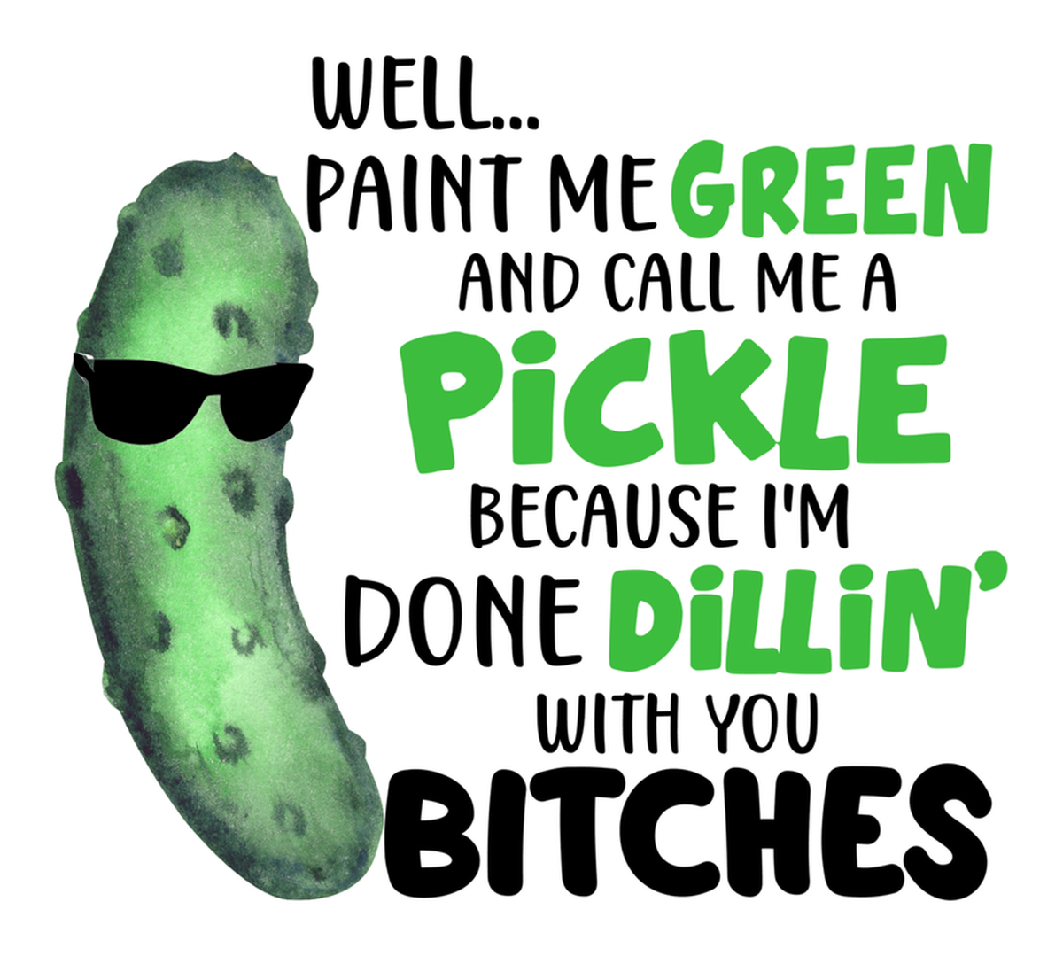 Highlights • Ships from Washington! Shorter shipping distances are kinder to the planet • Free shipping Materials: eco solvent ink, premium outdoor grade vinyl This is for one (1) 4 x 3.6 inch die cut vinyl waterproof sticker. Sticker decal features a cartoon cucumber standing upright, wearing sunglasses, and holding a green paintbrush in its hand. It's painted green and white. The phrase "Well, ain't that a pickle because I'm done with you bitches" is written on it. Sticker decal is indoor and outdoor (UV) safe. These high quality decal stickers are thick and durable and can be used many ways and on many items such as car windows, walls, lockers, tumblers, wine glasses, notebooks, planners, mirrors, cellphone cases, and more. Makes a great gift! Funny waterproof sticker - weatherproof bumper sticker - vinyl decal