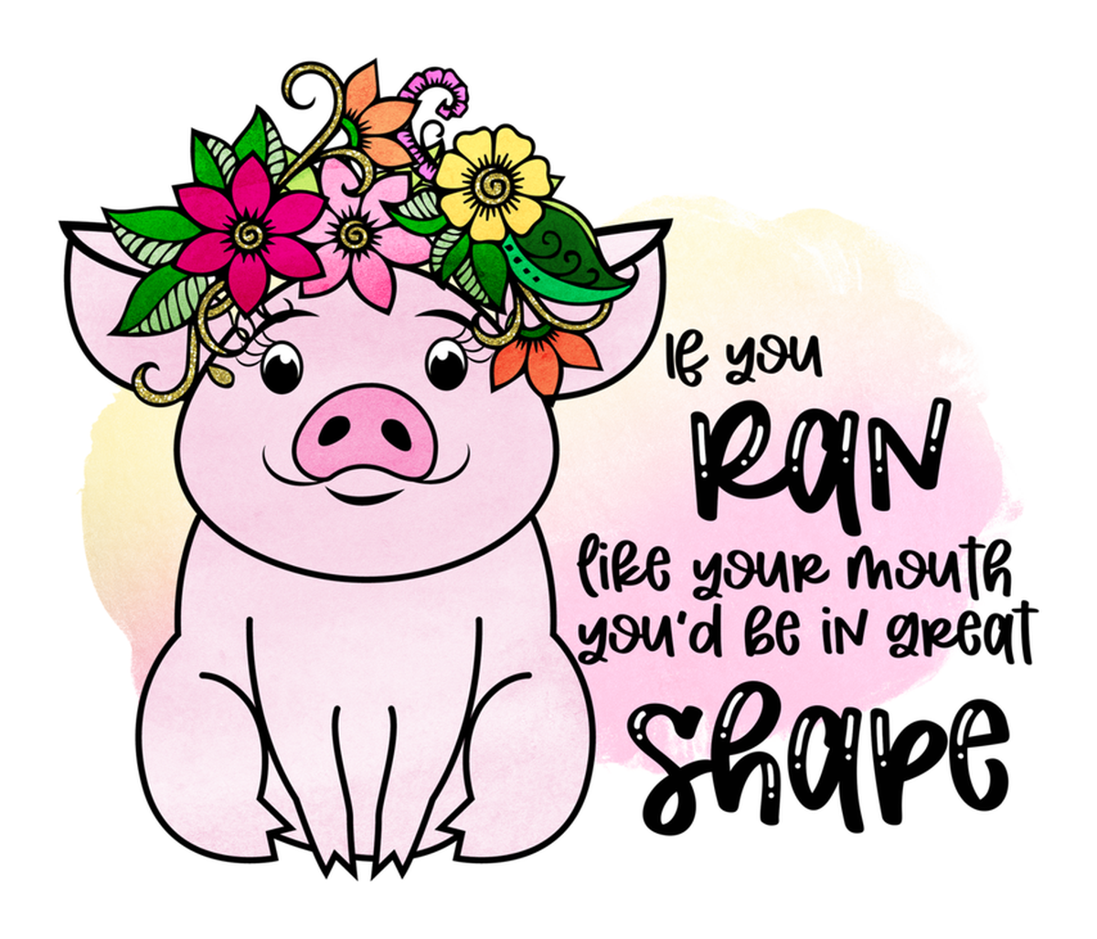 Highlights • Ships from Washington! Shorter shipping distances are kinder to the planet • Free shipping Materials: eco solvent ink, premium outdoor grade vinyl This is for one (1) 4 x 3.42 inch die cut vinyl waterproof sticker. Sticker decal of a pink pig with flower crown and rainbow flowers, sitting on a pink background with white lettering that reads "If you run, you'll feel the wind in your mouth. You'd be in great shape Sticker decal is indoor and outdoor (UV) safe. These high quality decal stickers are thick and durable and can be used many ways and on many items such as car windows, walls, lockers, tumblers, wine glasses, notebooks, planners, mirrors, cellphone cases, and more. Makes a great gift! Funny waterproof sticker - weatherproof bumper sticker - vinyl decal