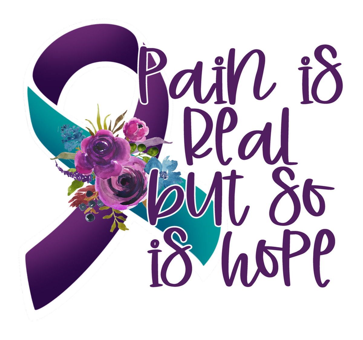 Highlights • Ships from Washington! Shorter shipping distances are kinder to the planet • Free shipping Materials: eco solvent ink, premium outdoor grade vinyl This is for one (1) 4 x 3.75 inch die cut vinyl waterproof sticker. Sticker decal is colorful and features a purple ribbon design symbolizing cancer awareness. The artwork conveys a powerful message about pain and hope in the face of adversity. It reads "Pain is real but so is HOPE" surrounded by flowers, emphasizing the strength and resilience of those affected by cancer. Sticker decal is indoor and outdoor (UV) safe. These high quality decal stickers are thick and durable and can be used many ways and on many items such as car windows, walls, lockers, tumblers, wine glasses, notebooks, planners, mirrors, cellphone cases, and more. Makes a great gift! Funny waterproof sticker - weatherproof bumper sticker - vinyl decal