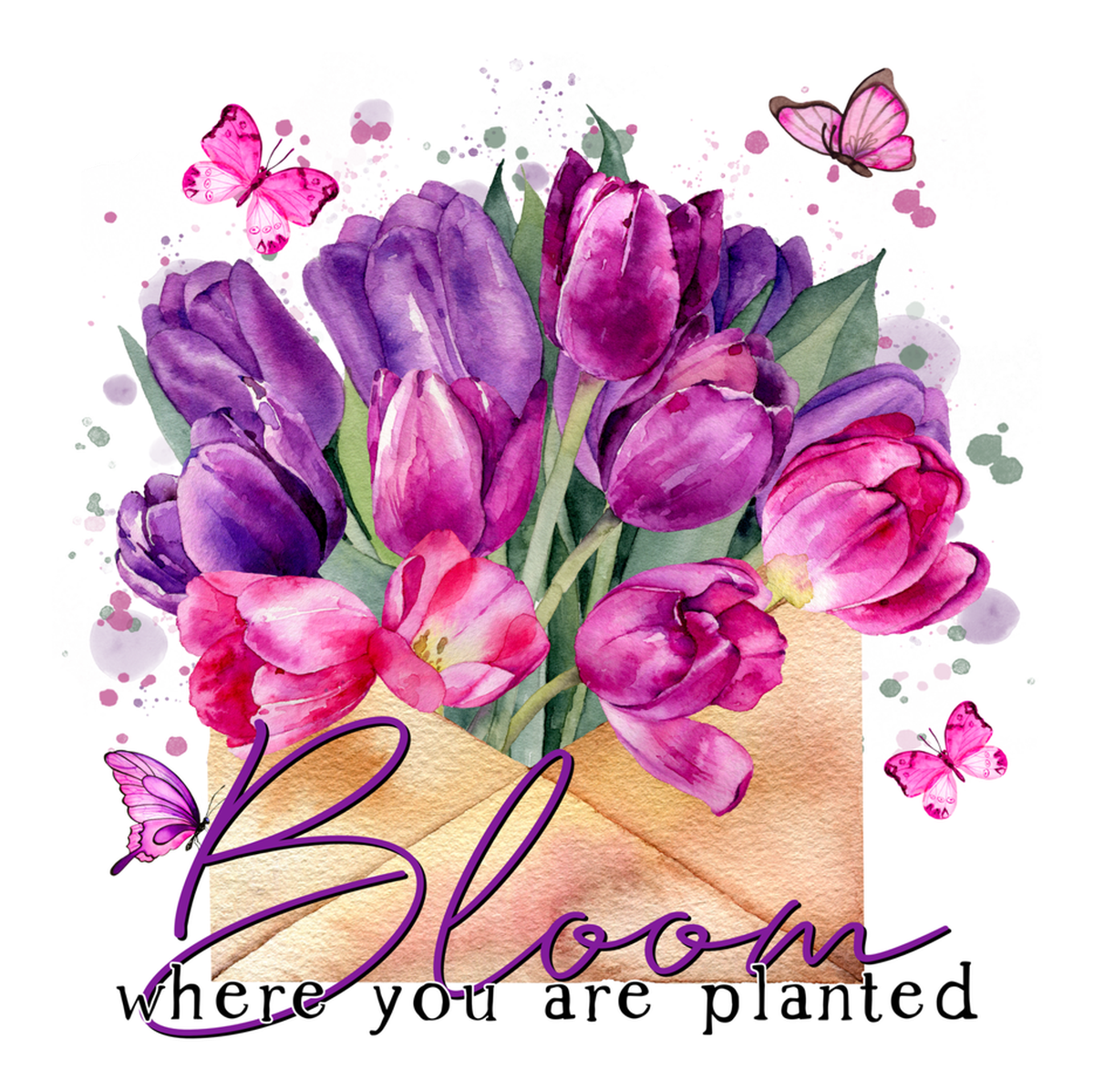 Highlights • Ships from Washington! Shorter shipping distances are kinder to the planet • Free shipping Materials: eco solvent ink, premium outdoor grade vinyl This is for one (1) 4 x 3.99 inch die cut vinyl waterproof sticker. Sticker decal of an image of a bouquet of purple tulips in a vase, surrounded by butterflies, with the text "BLOOM WHERE YOU ARE PLANTED" at the bottom. The sticker has a pastel color scheme. Sticker decal is indoor and outdoor (UV) safe. These high quality decal stickers are thick and durable and can be used many ways and on many items such as car windows, walls, lockers, tumblers, wine glasses, notebooks, planners, mirrors, cellphone cases, and more. Makes a great gift! Funny waterproof sticker - weatherproof bumper sticker - vinyl decal