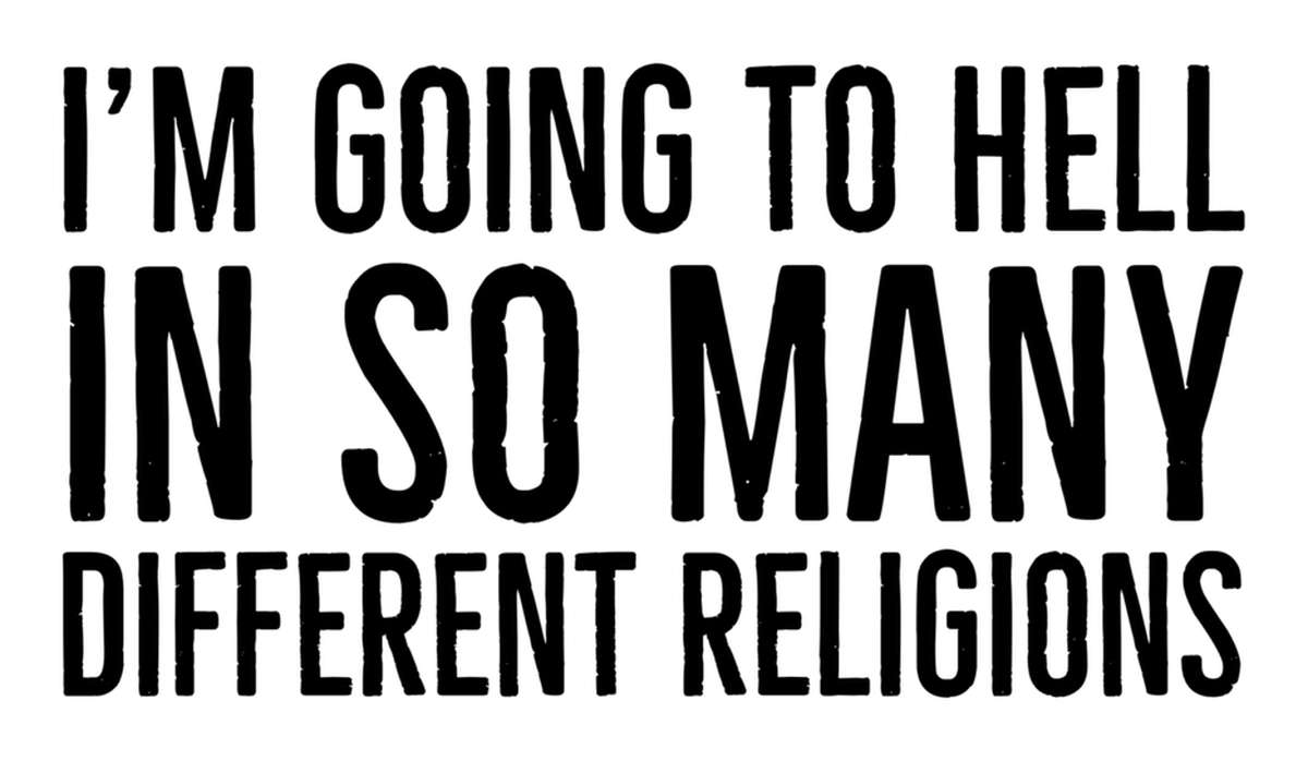 Highlights • Ships from Washington! Shorter shipping distances are kinder to the planet • Free shipping Materials: eco solvent ink, premium outdoor grade vinyl This is for one (1) 4 x 2.33 inch die cut vinyl waterproof sticker. Sticker decal: An ironic message from a different religious group. The image shows a white sign with black text that says "I'm going to hell in so many ways... I'm going to hell in so many different religions. Sticker decal is indoor and outdoor (UV) safe. These high quality decal stickers are thick and durable and can be used many ways and on many items such as car windows, walls, lockers, tumblers, wine glasses, notebooks, planners, mirrors, cellphone cases, and more. Makes a great gift! Funny waterproof sticker - weatherproof bumper sticker - vinyl decal