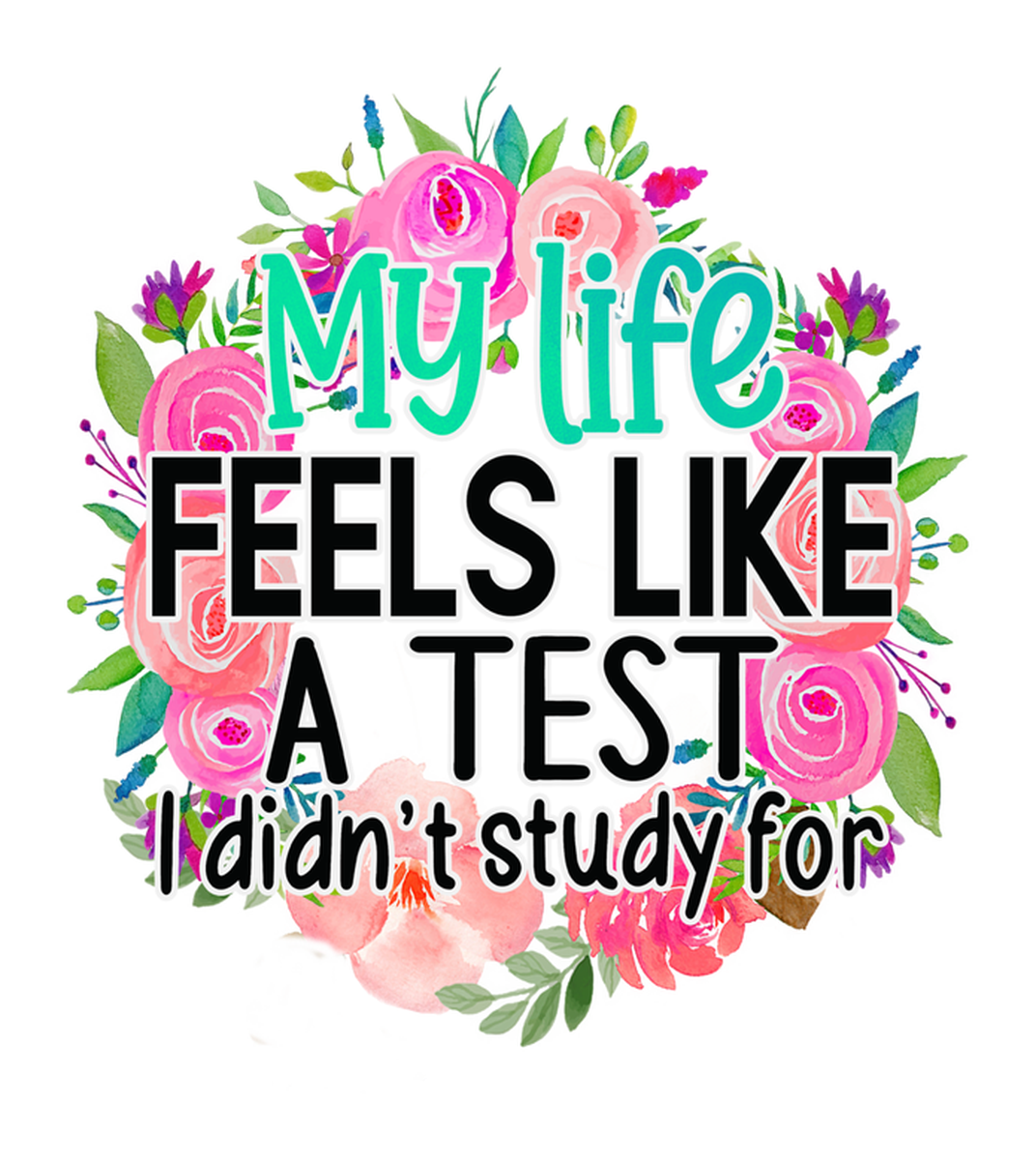 Highlights • Ships from Washington! Shorter shipping distances are kinder to the planet • Free shipping Materials: eco solvent ink, premium outdoor grade vinyl This is for one (1) 3.57 x 4 inch die cut vinyl waterproof sticker. Sticker decal depicts a message that reads, "My life feels like a test and I didn't study for it." The sticker is decorated with pink roses around the quote, suggesting a touch of whimsy or irony in contrast to the exam analogy. Sticker decal is indoor and outdoor (UV) safe. These high quality decal stickers are thick and durable and can be used many ways and on many items such as car windows, walls, lockers, tumblers, wine glasses, notebooks, planners, mirrors, cellphone cases, and more. Makes a great gift! Funny waterproof sticker - weatherproof bumper sticker - vinyl decal