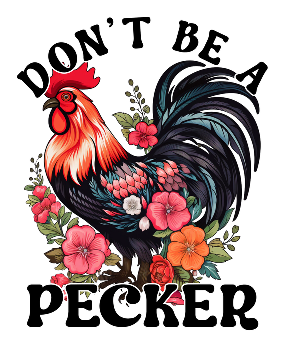 Highlights • Ships from Washington! Shorter shipping distances are kinder to the planet • Free shipping Materials: eco solvent ink, premium outdoor grade vinyl This is for one (1) 3.29 x 4 inch die cut vinyl waterproof sticker. Sticker decal features an illustrated rooster with a floral background, adorned with red flowers, pink leaves, and blueberries. The bird has a colorful design on its feathers, including shades of purple and pink. The sticker also includes text that says "DON'T BE A PECKER" in white lettering and "PECKER" in bold black letters. Sticker decal is indoor and outdoor (UV) safe. These high quality decal stickers are thick and durable and can be used many ways and on many items such as car windows, walls, lockers, tumblers, wine glasses, notebooks, planners, mirrors, cellphone cases, and more. Makes a great gift! Funny waterproof sticker - weatherproof bumper sticker - vinyl decal