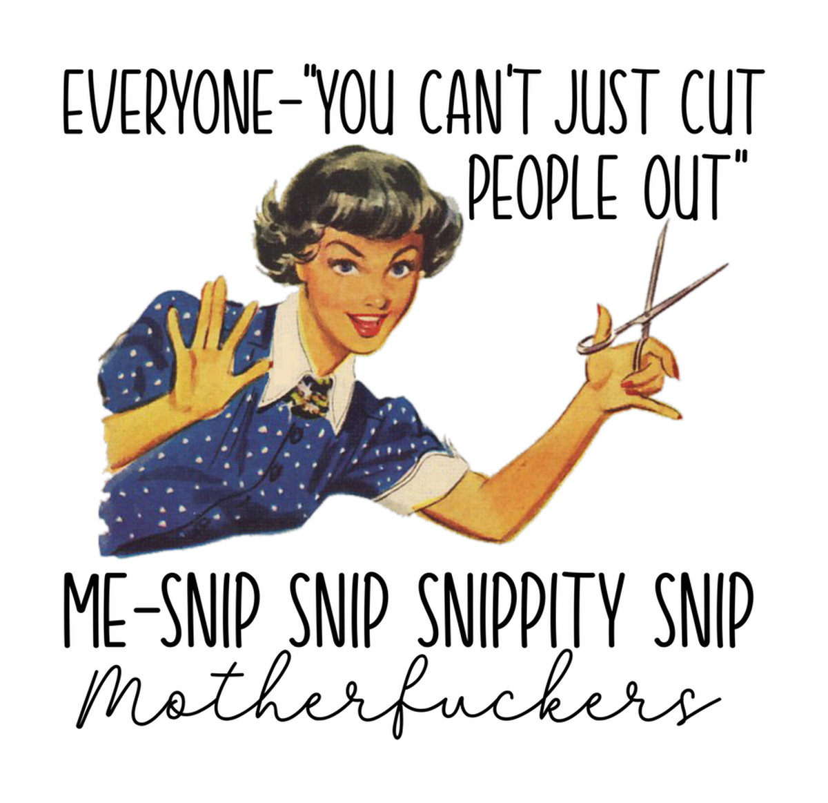 Highlights • Ships from Washington! Shorter shipping distances are kinder to the planet • Free shipping Materials: eco solvent ink, premium outdoor grade vinyl This is for one (1) 4 x 3.88 inch die cut vinyl waterproof sticker. Sticker decal is a humorous social commentary featuring an old-fashioned illustration of a woman cutting hair, with text that reads "everyone – you can’t just cut people out" and other lines from the song "me--snip snipy snipitty snippers. Sticker decal is indoor and outdoor (UV) safe. These high quality decal stickers are thick and durable and can be used many ways and on many items such as car windows, walls, lockers, tumblers, wine glasses, notebooks, planners, mirrors, cellphone cases, and more. Makes a great gift! Funny waterproof sticker - weatherproof bumper sticker - vinyl decal