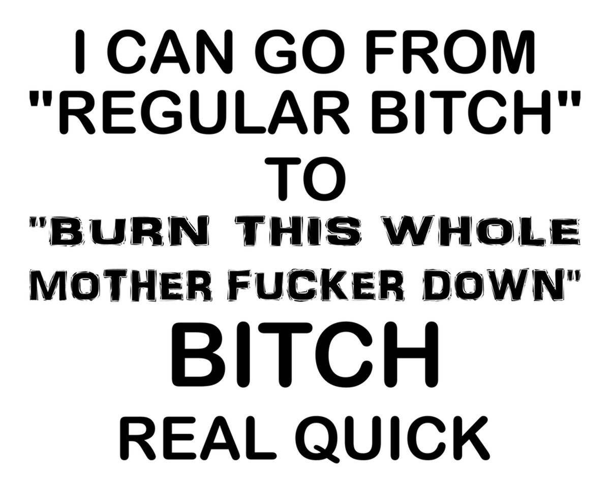 Highlights • Ships from Washington! Shorter shipping distances are kinder to the planet • Free shipping Materials: eco solvent ink, premium outdoor grade vinyl This is for one (1) 4 x 3.24 inch die cut vinyl waterproof sticker. Sticker decal featuring a black and white meme with text that reads "I can go from regular to bitch. Burn this whole mother down." followed by "BITCH" in large, bold letters at bottom. Sticker decal is indoor and outdoor (UV) safe. These high quality decal stickers are thick and durable and can be used many ways and on many items such as car windows, walls, lockers, tumblers, wine glasses, notebooks, planners, mirrors, cellphone cases, and more. Makes a great gift! Funny waterproof sticker - weatherproof bumper sticker - vinyl decal