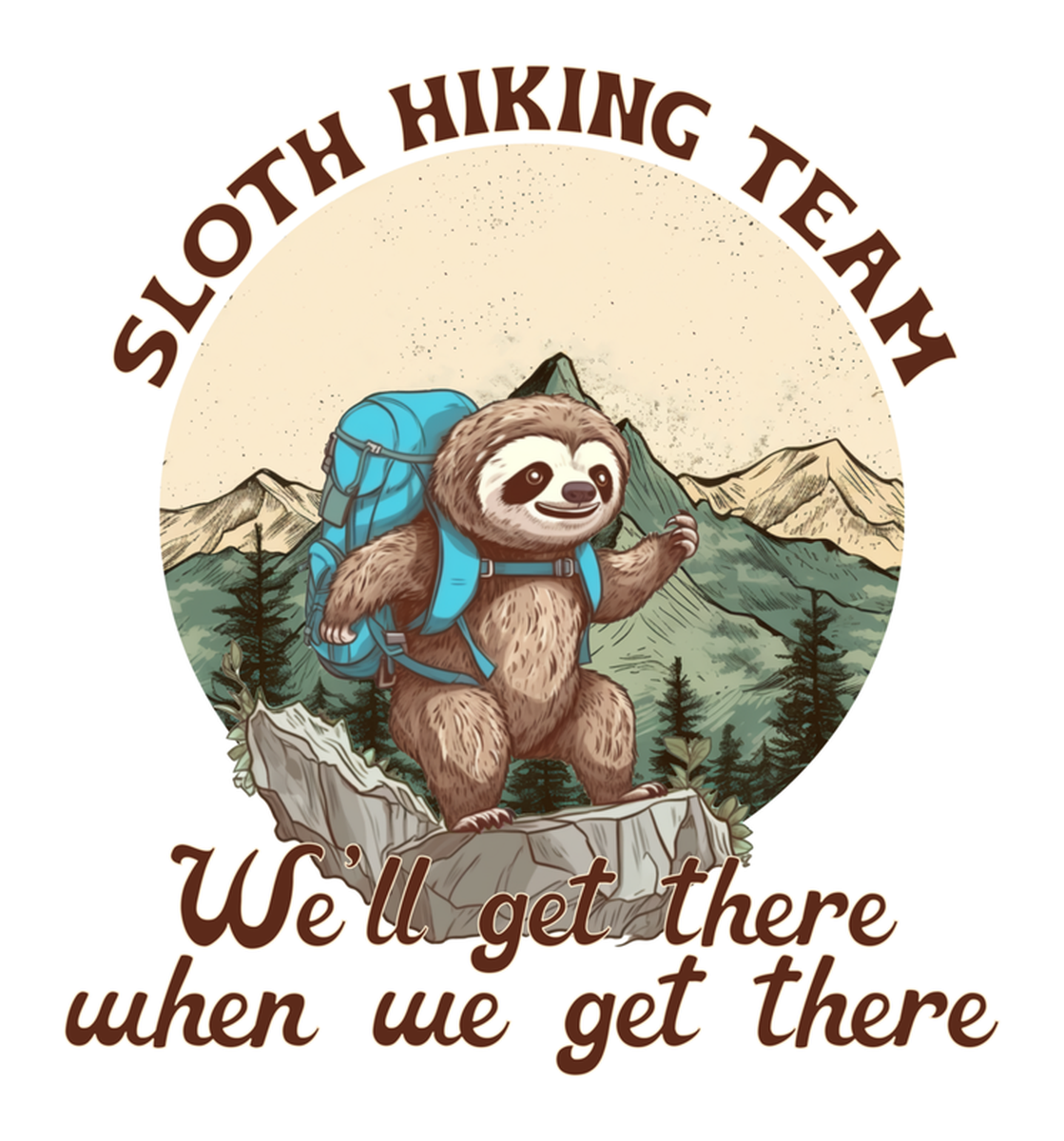 Highlights • Ships from Washington! Shorter shipping distances are kinder to the planet • Free shipping Materials: eco solvent ink, premium outdoor grade vinyl This is for one (1) 3.73 x 4 inch die cut vinyl waterproof sticker. Sticker decal of SLOTH HIKING TEAM hiking in mountainous terrain, with the quote "WE'LL GET THERE WHEN WE GET THERE" visible on the sticker. Sticker decal is indoor and outdoor (UV) safe. These high quality decal stickers are thick and durable and can be used many ways and on many items such as car windows, walls, lockers, tumblers, wine glasses, notebooks, planners, mirrors, cellphone cases, and more. Makes a great gift! Funny waterproof sticker - weatherproof bumper sticker - vinyl decal