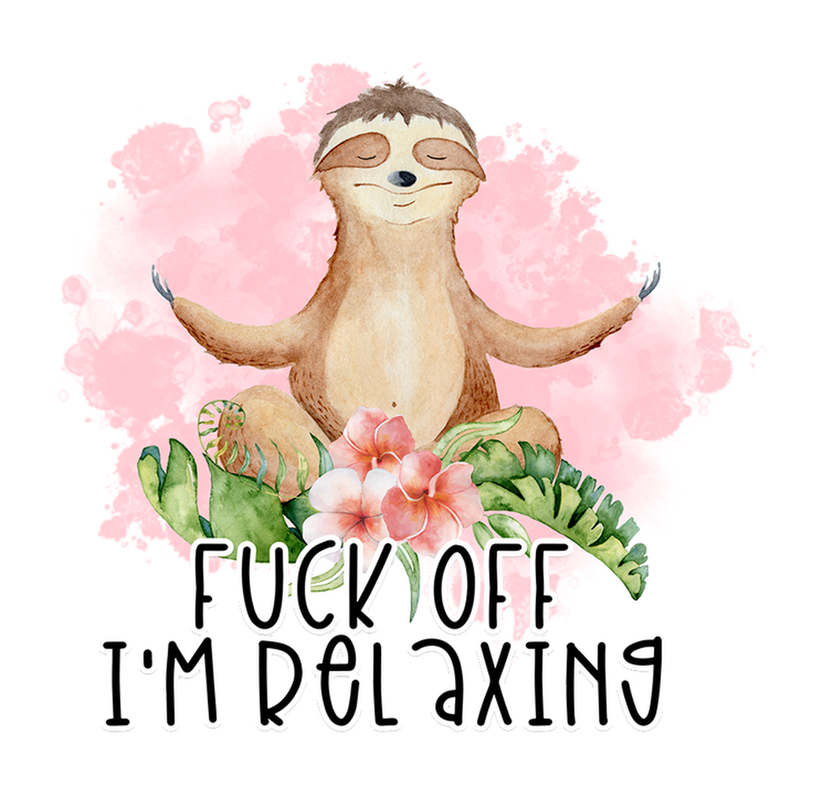 Highlights • Ships from Washington! Shorter shipping distances are kinder to the planet • Free shipping Materials: eco solvent ink, premium outdoor grade vinyl This is for one (1) 4 x 3.83 inch die cut vinyl waterproof sticker. Sticker decal featuring a cartoon sloth sitting on a plant with pink flowers, hands resting on its lap. The sloth is meditating with a calm expression. Above the sloth, there's a speech bubble with the words "Fuck off I'm relaxing. Sticker decal is indoor and outdoor (UV) safe. These high quality decal stickers are thick and durable and can be used many ways and on many items such as car windows, walls, lockers, tumblers, wine glasses, notebooks, planners, mirrors, cellphone cases, and more. Makes a great gift! Funny waterproof sticker - weatherproof bumper sticker - vinyl decal
