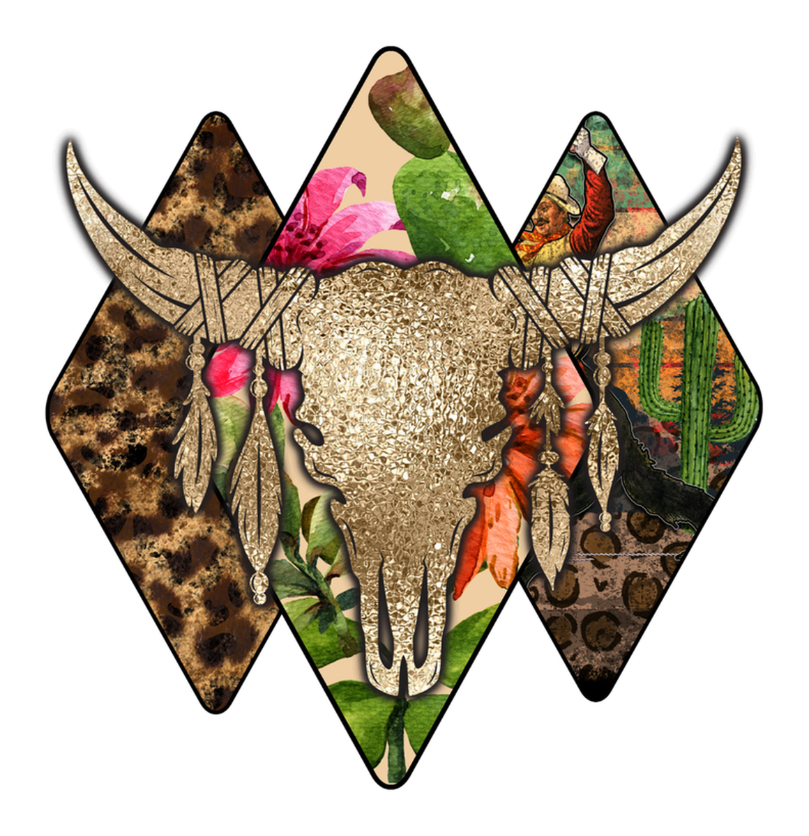 Highlights • Ships from Washington! Shorter shipping distances are kinder to the planet • Free shipping Materials: eco solvent ink, premium outdoor grade vinyl This is for one (1) 3.87 x 4 inch die cut vinyl waterproof sticker. Sticker decal: A colorful sticker depicts a collection of items including flowers, cacti, a cow skull, a pink flamingo, gold glitter, and decorative papers in a vintage border style, each within its own square, forming a larger diamond-shaped design. Sticker decal is indoor and outdoor (UV) safe. These high quality decal stickers are thick and durable and can be used many ways and on many items such as car windows, walls, lockers, tumblers, wine glasses, notebooks, planners, mirrors, cellphone cases, and more. Makes a great gift! Funny waterproof sticker - weatherproof bumper sticker - vinyl decal