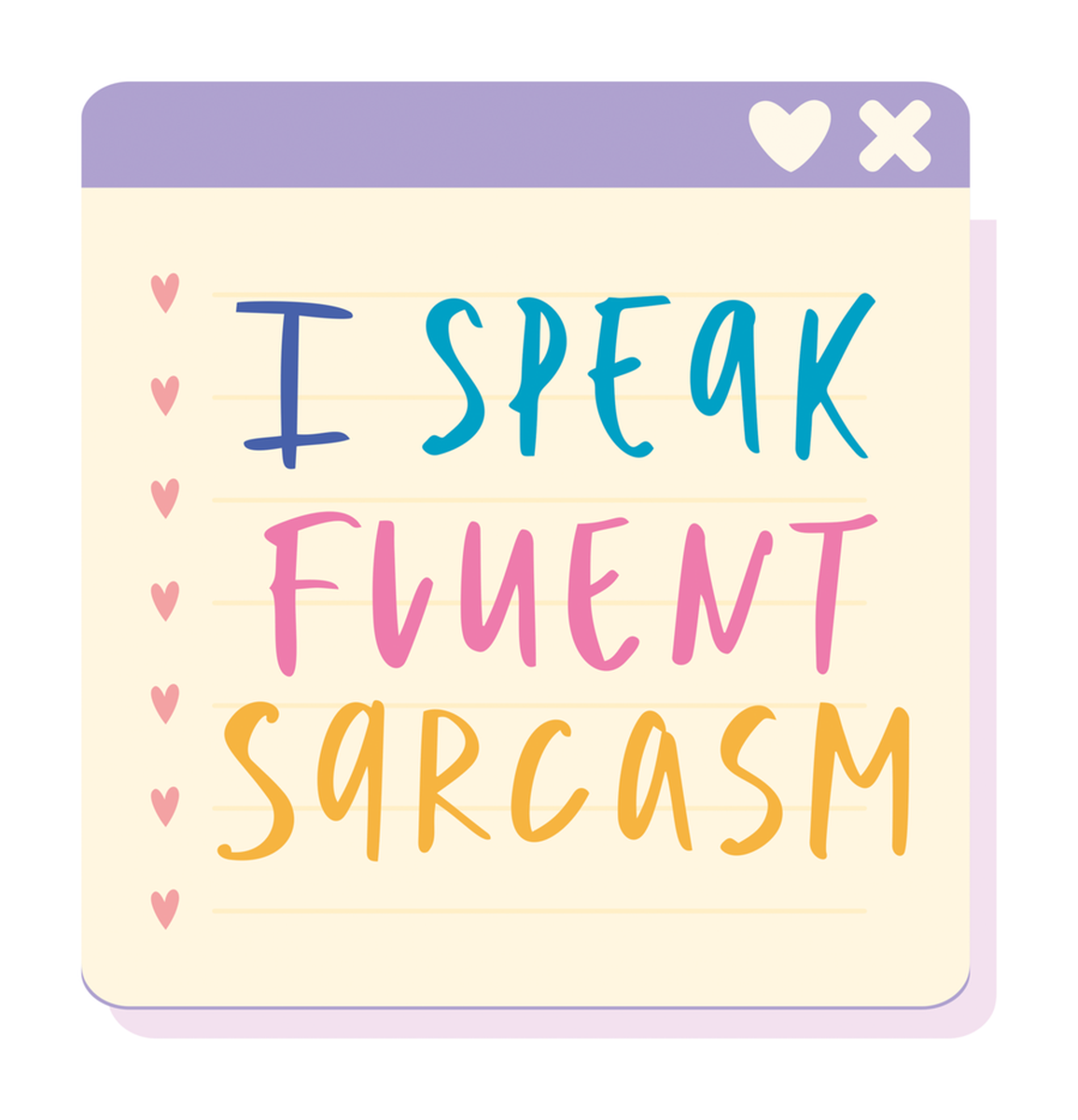 Highlights • Ships from Washington! Shorter shipping distances are kinder to the planet • Free shipping Materials: eco solvent ink, premium outdoor grade vinyl This is for one (1) 3.85 x 4 inch die cut vinyl waterproof sticker. Sticker decal: A digital drawing of a light purple sticky note on a white surface with playful hand-drawn style, featuring text in blue and pink, emphasizing "I speak fluent sarcasm" and "fluent humor. Sticker decal is indoor and outdoor (UV) safe. These high quality decal stickers are thick and durable and can be used many ways and on many items such as car windows, walls, lockers, tumblers, wine glasses, notebooks, planners, mirrors, cellphone cases, and more. Makes a great gift! Funny waterproof sticker - weatherproof bumper sticker - vinyl decal