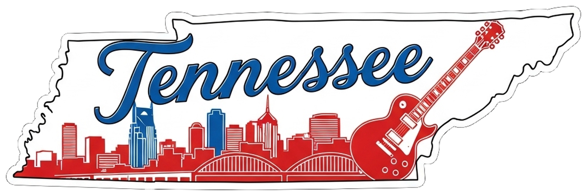 Highlights • Ships from Washington! Shorter shipping distances are kinder to the planet • Free shipping Materials: eco solvent ink, premium outdoor grade vinyl This is for one (1) 4 x 1.34 inch die cut vinyl waterproof sticker. Sticker decal featuring an illustration of a cityscape with a bridge and skyline, overlaid with the word "Tennessee" in white letters above a guitar pick design. The background is mostly red with blue outlines, mimicking a state flag or banner. Sticker decal is indoor and outdoor (UV) safe. These high quality decal stickers are thick and durable and can be used many ways and on many items such as car windows, walls, lockers, tumblers, wine glasses, notebooks, planners, mirrors, cellphone cases, and more. Makes a great gift! Funny waterproof sticker - weatherproof bumper sticker - vinyl decal