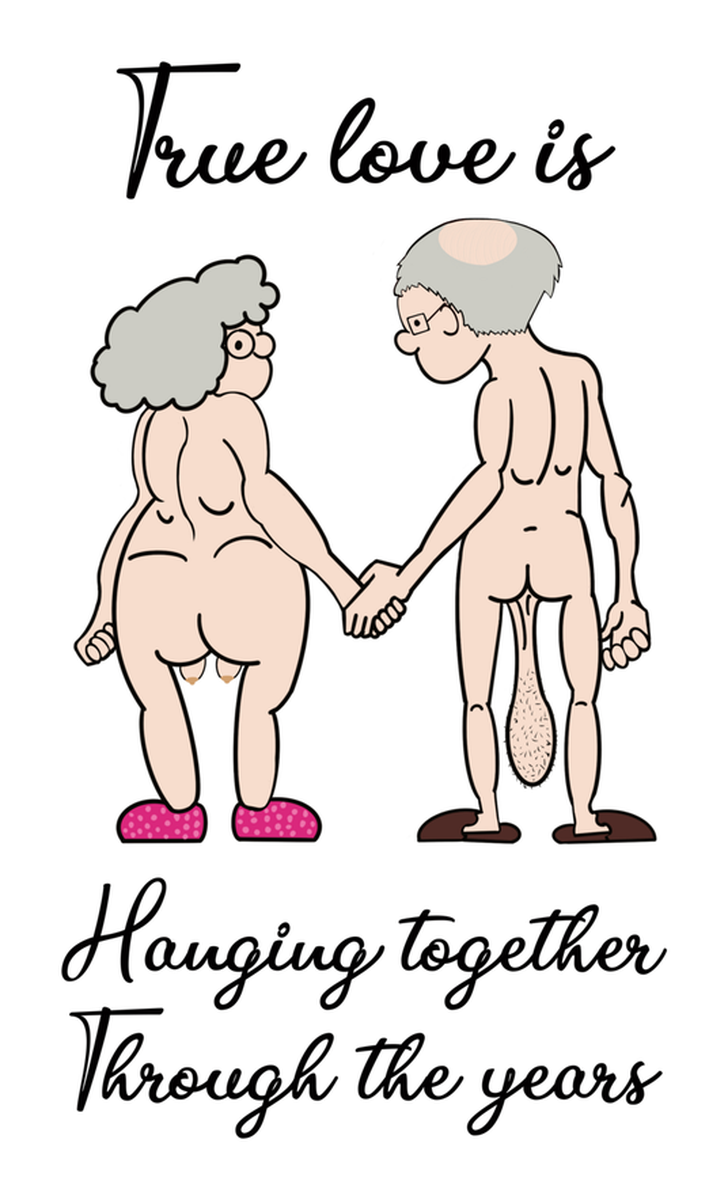 Highlights • Ships from Washington! Shorter shipping distances are kinder to the planet • Free shipping Materials: eco solvent ink, premium outdoor grade vinyl This is for one (1) 2.43 x 4 inch die cut vinyl waterproof sticker. Sticker decal of a cartoon drawing featuring two naked people walking hand in hand, one in a red hat with the words "TRUE LOVE IS HANGING TOGETHER THROUGH THE YEARS" written above them, set against a white background. Sticker decal is indoor and outdoor (UV) safe. These high quality decal stickers are thick and durable and can be used many ways and on many items such as car windows, walls, lockers, tumblers, wine glasses, notebooks, planners, mirrors, cellphone cases, and more. Makes a great gift! Funny waterproof sticker - weatherproof bumper sticker - vinyl decal
