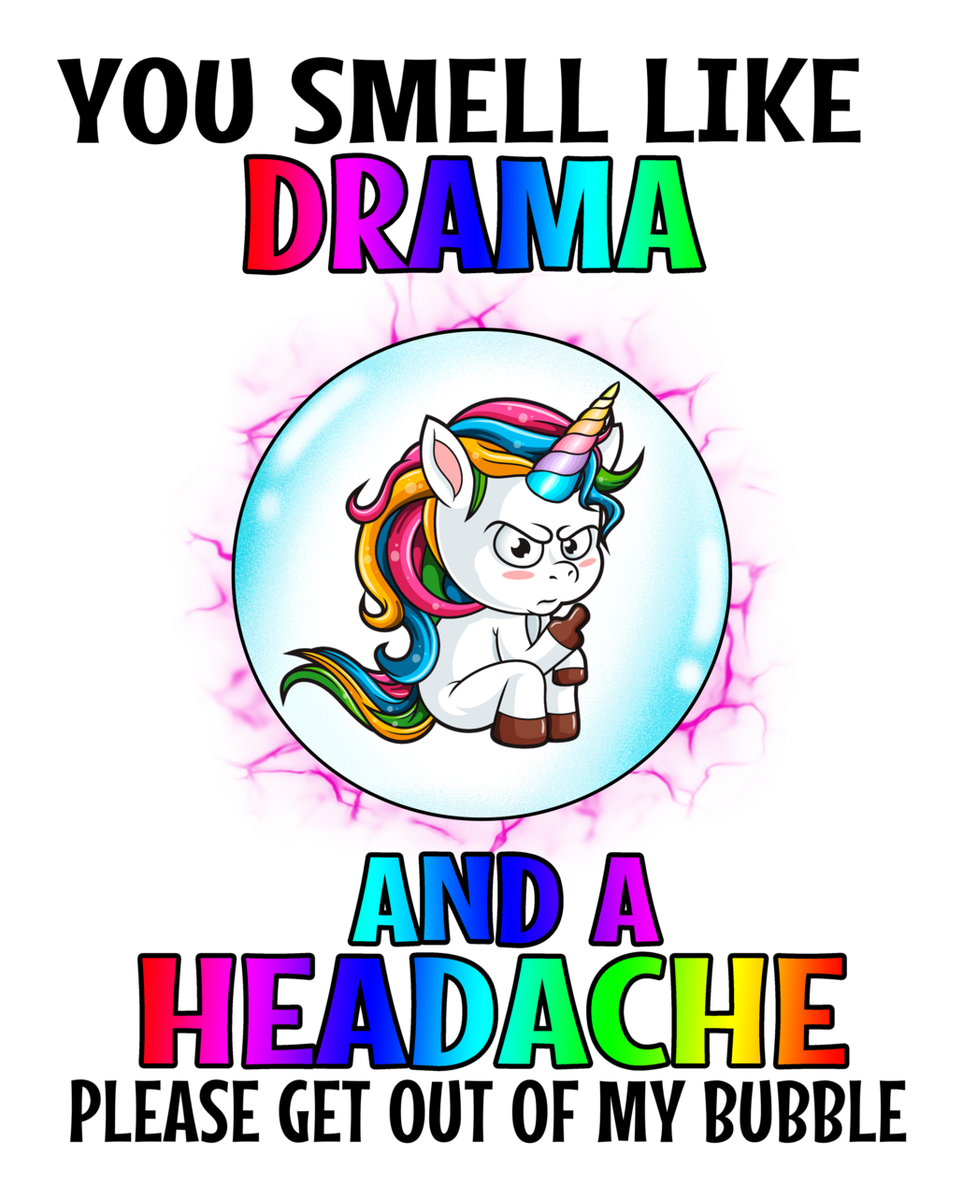 Highlights • Ships from Washington! Shorter shipping distances are kinder to the planet • Free shipping Materials: eco solvent ink, premium outdoor grade vinyl This is for one (1) 3.21 x 4 inch die cut vinyl waterproof sticker. Sticker decal is a humorous and colorful illustration featuring a cartoon unicorn character in a vibrant, whimsical style. It features a speech bubble with the text, "You smell like drama and I need my bubble back please get out of my bubble." The unicorn has a rainbow mane and tail, adding to its cute and whimsical appearance. The background is pink with a purple outline, giving it a cheerful and playful feel. The sticker also contains the image of a bubble, which reinforces the theme of the text. Sticker decal is indoor and outdoor (UV) safe. These high quality decal stickers are thick and durable and can be used many ways and on many items such as car windows, walls, lockers, tumblers, wine glasses, notebooks, planners, mirrors, cellphone cases, and more. Makes a great gift! Funny waterproof sticker - weatherproof bumper sticker - vinyl decal